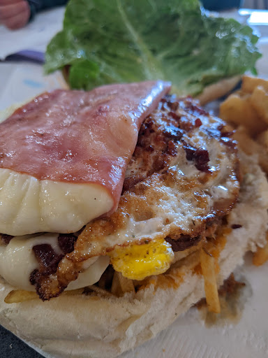 Excellent sandwiches, too big to fit in most mouths. Potato sticks on them?- yes! The pictures show the enormous brisket sandwich served with ham and egg and cheese and who knows what else. Friendly people, not much English spoken by most, but thankfully Ricardo was there and described everything we asked about. We saw a few Portuguese folks ordering off the menu, like a thick corn (?) stew..I wish they'd list all the authentic foods for us gringos that like to try new things. As we were leaving (about 4:30) there were people coming in with guitars and mandolins, looked like a bunch of good old folkies,.. I asked if they were having a hootenanny and darn it looks like they were! Every other Saturday they let people get together to play music. I'll head back there next meet up, April 1, to check it out over a cup of excellent cappuccino. Very...
