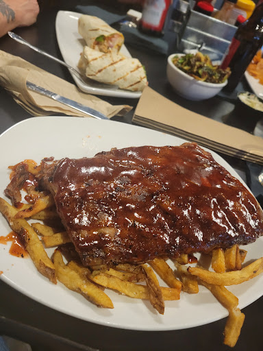 Read moreFirst and foremost, the staff was wonderfully polite and friendly. Genuinely welcoming. But the food was not good. The French Dip Philly had almost no flavor, except for the au jus which was basically just salty. The ribs were like chewing pencil erasers. Ever heard of "Fall off the bone tender?" These were the opposite. They were "Stick to the bone at all costs". But the worst part was the noise. It was so unbelievably loud in there that the people at our table could not converse. It was worse than a noisy nightclub. My ears were ringing when we left. No...