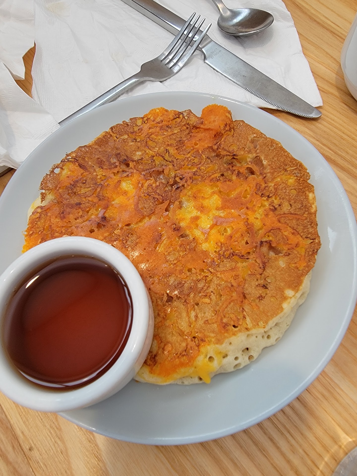 Read moreThis place was a gem. The food was fantastic. Our server, Maddie, and all the staff we interacted with were so sweet & friendly. They gave my daughter a little turtle toy, which was so nice & she will have it forever. The kids' menu was a little pricey. It was $9 for one pancake, sausage & some vanilla yogurt. The menu said milk was included in the kids' menu, but it was never brought. The eggs Benedict was so good, I had it with the sausage! You could get smoked salmon, for I believe, $4 more, which sounded good. My hubs had the country fried steak & said it was really good, he only wished he would have asked for fries instead of the potatoes which he wasn't a fan of but in fairness he doesn't like home fries any where & we saw another table get a basket of regular fries that looked delicious. Good hot coffee! I liked that they left a water pitcher on the table. It was very clean in there, bathrooms included. I only took one star off because there was no changing table in the restroom, which was a real bummer when traveling with a baby. Overall, I definitely recommend if you don't mind the...