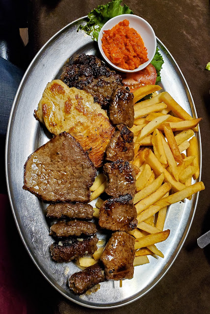 We ordered ajvar (pronounced aye-var) to go with all our meat. Ajvar is a spicy eggplant relish that tastes good with everything.