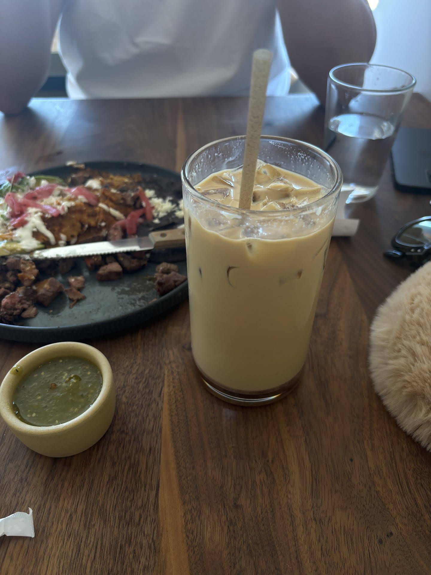 We went on a Sunday for brunch, it was pretty busy but we didn’t have to wait for a table. My boyfriend is Hispanic and we were both shocked to see that chilaquiles and 2 asada tacos were about $21-$25 each item. But we want to support local and ordered them anyway despite the price point. I also ordered a horchata latte.