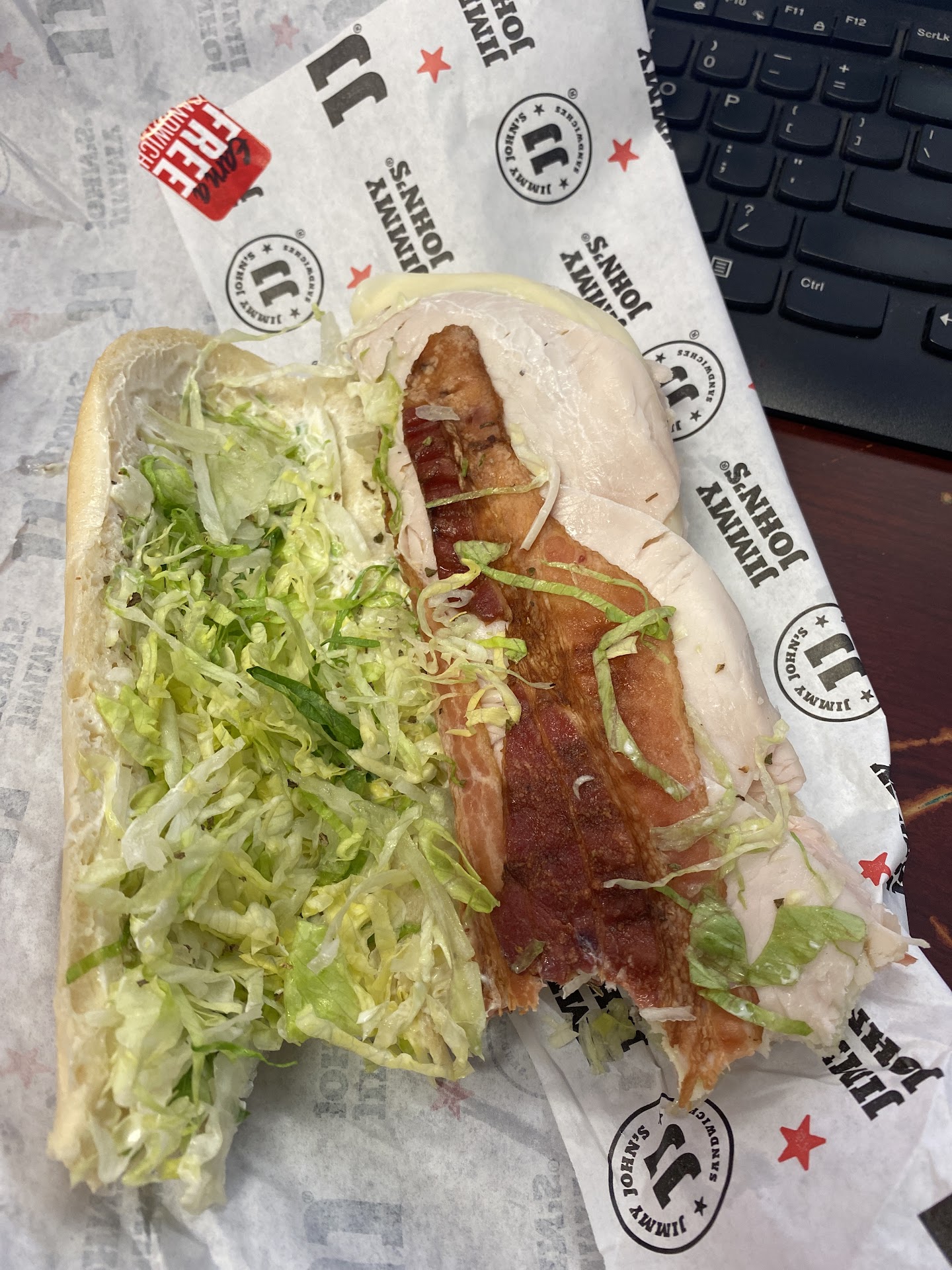 Adding to this review since I decided to give them another whirl…. Well I should have known better. Ordered and unwhich no Mayo, but with djon mustard. Got it, I have neither on it. Just oil and vinegar literally pooring out of it, now it’s sitting in a pool of something I didn’t even order on it. And it wasn’t even wrapped all the way around. I now have a pile of veggies and meat that is not appetizing at all. I mean look at the grease!! The cucumber is see through, which tells me it’s been sitting for days. The turkey is gross looking as well. Garbage, and a waste of money. Waste of money. Do better JJ’s. 🤦🏻♀️ this was the last chance I’m giving them. At least the chips and soda came sealed in their own packaging. But that credit doesn’t go to them. Lol The delivery driver asked me for additional tip, even though I tipped when I paid online…