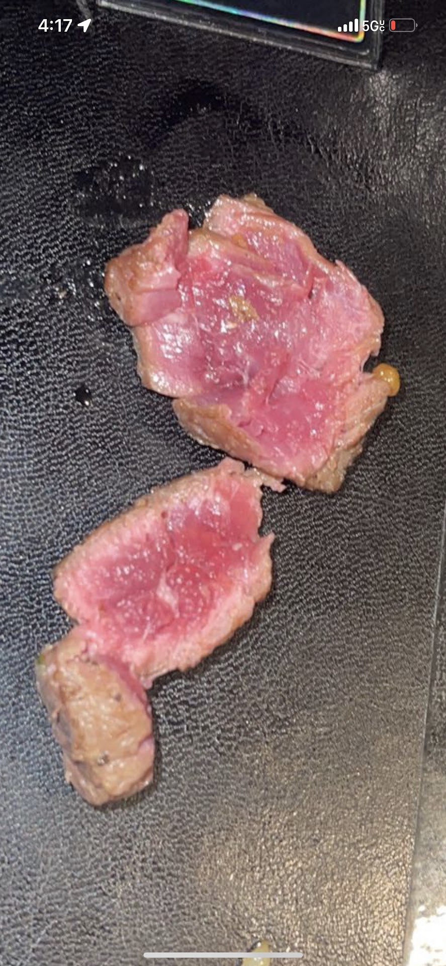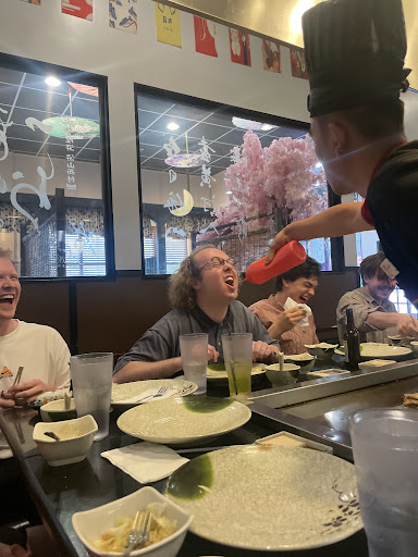 The food was excellentâthe steak cooked perfectly medium rare, the vegetables still crisp, the fried rice somehow fluffy and rich at the same timeâbut honestly, it was hard to focus on eating because we didnât want the show to end. After we finished, we lingered awkwardly, just hovering near the next table to catch more of Carterâs antics like moths to a flaming onion volcano (my friends talked me out standing behind some random family to see the performance). If you told me I could pay $40 just to stand near one of his stages with no food, Iâd do it in a...