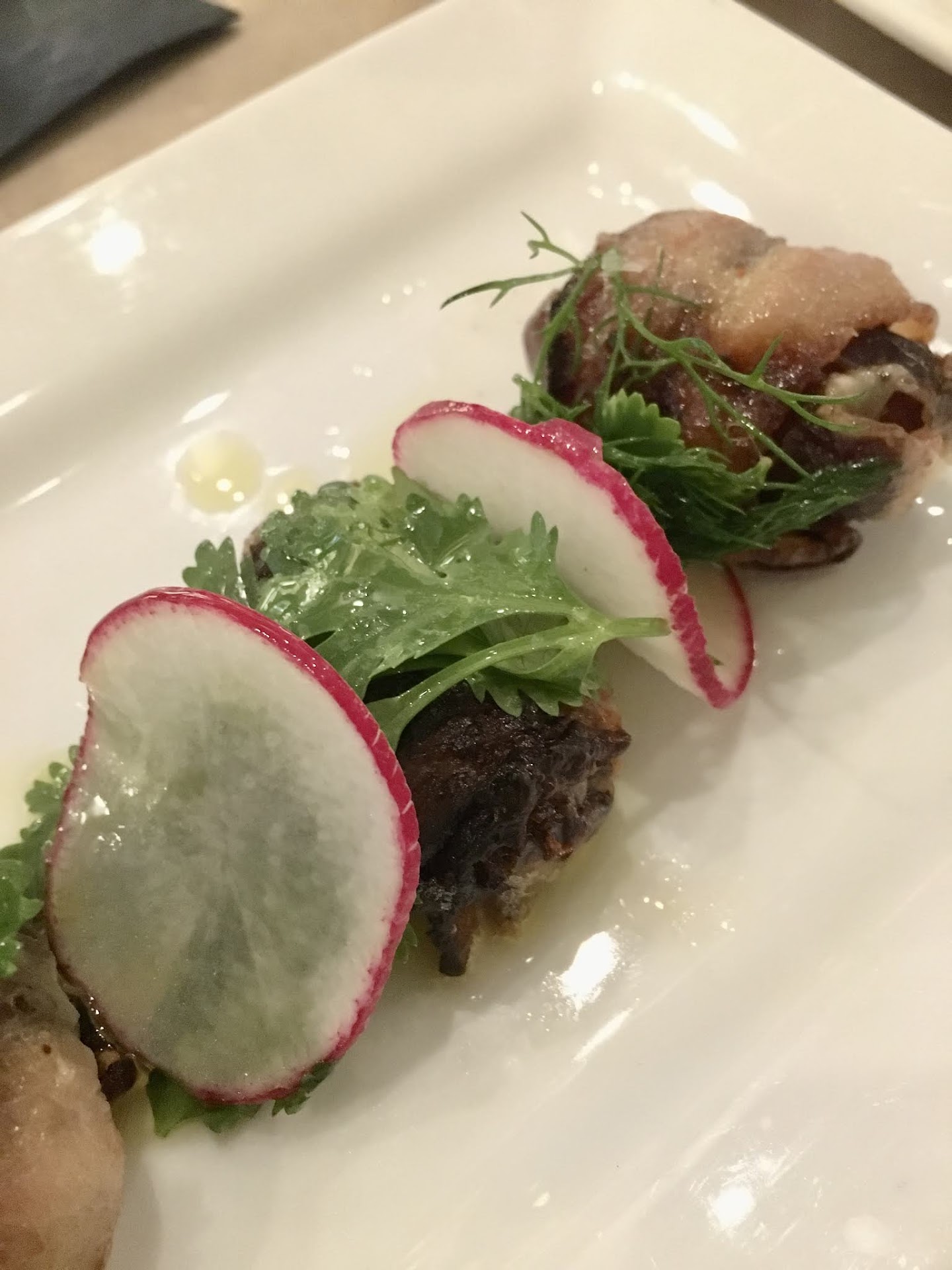 We had reservations for Valentine’s Day, arrived a few minutes early and were seated right behind the host's stand. There was a paper menu on the table outlining their $75 set menu. This was the first we knew of a set menu as I don't recall seeing it on the website and they did not mention it when they called to confirm our reservation. The girlfriend is gluten and dairy free, the server said they could easily accommodate her with the choices of the set menu: they would have veggie sticks substituted for the pita on the appetizer plate, leave the cheese off the salad, provide a selection of berries and fruits for desert, sounds great so we agreed.