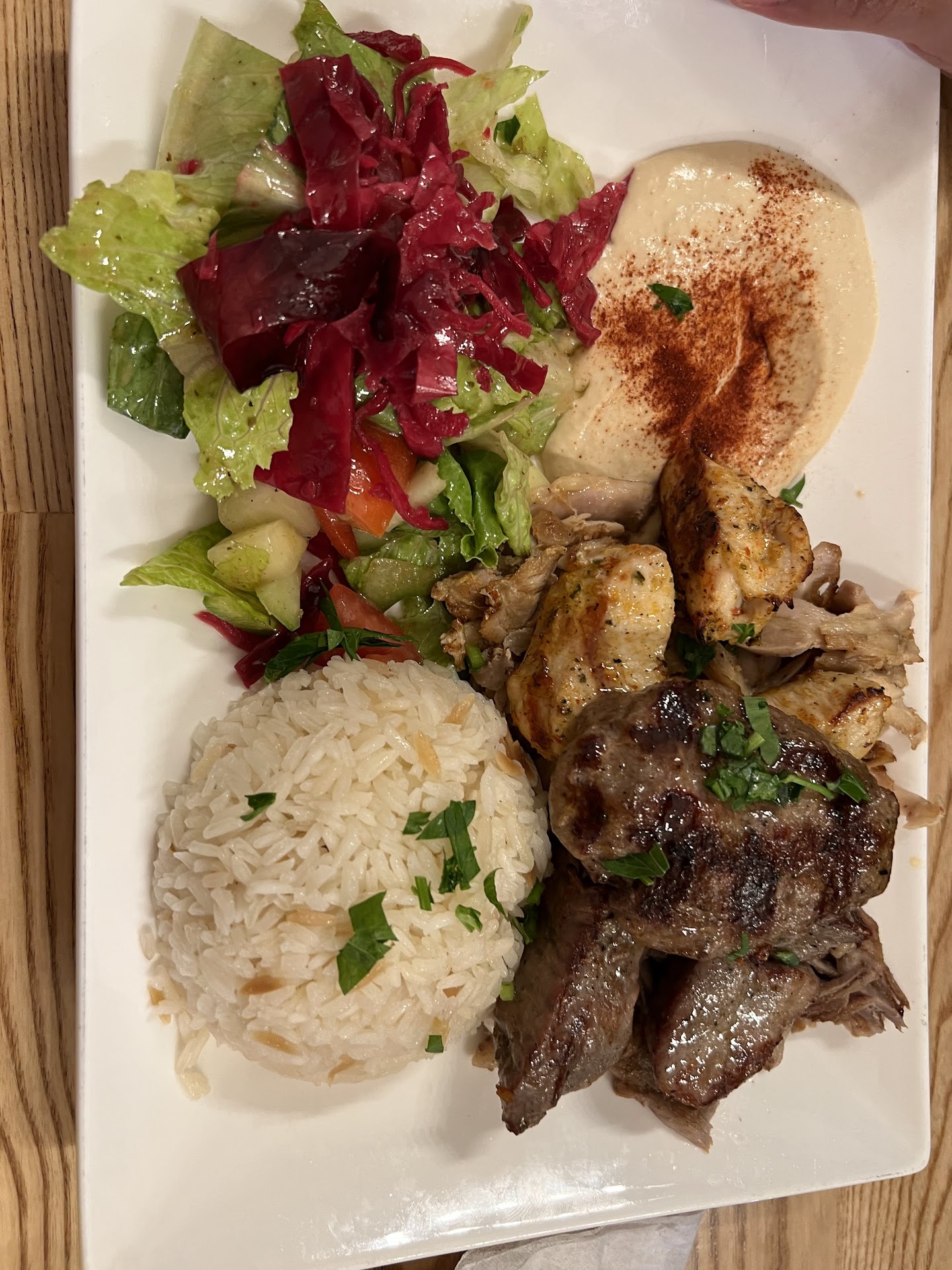I ordered the combo Gyro plate, which comes with lamb/beef and chicken Gyro, rice, salad, hummus and a pita for $20. Plenty of food. Really good flavor ok both the lamb/beef and chicken Gyro. Hummus was smoothe, but a touch too oily. Salad tasted nice and fresh. Really enjoyable meal. Top 10 Mediterranean meal for me this year for sure.