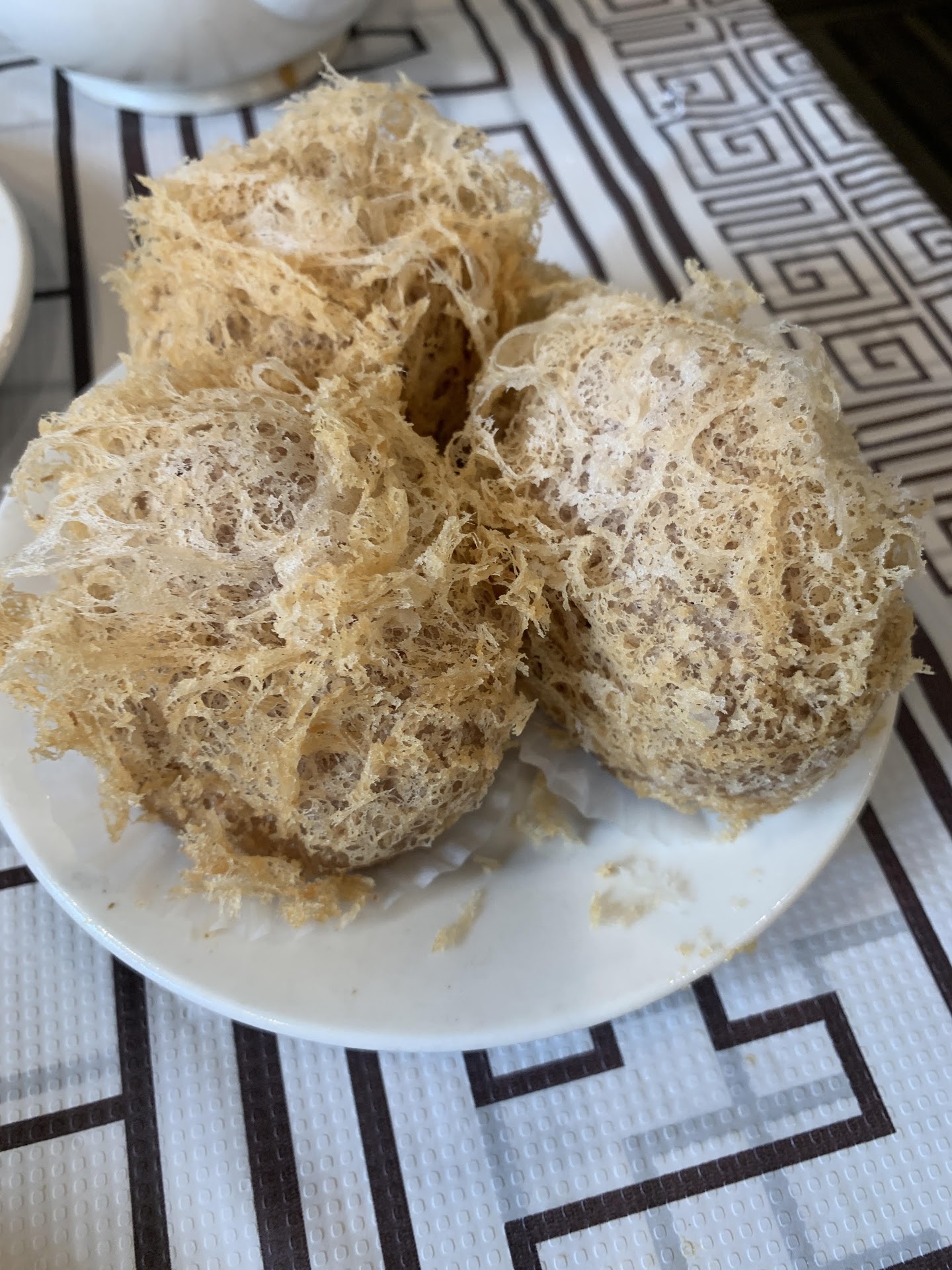 We came on a Thursday at noontime so I leave room for benefit of the doubt and COVID circumstances, but this meal was genuinely regrettable. We ordered 6 dimsum plates between two dim sum lovers. It took half an hour to receive the last plate after ordering (check-box menu style) and the first took ten minutes to arrive. Having worked in dumpling restaurants myself, I imagine the first eight to ten minutes might have been the time it took to put some frozen dumplings into a steamer. The following intervals may have been owed to a lesser number of stoves or staff, although there at least seemed to be a healthy number of front staff for the half-full restaurant.