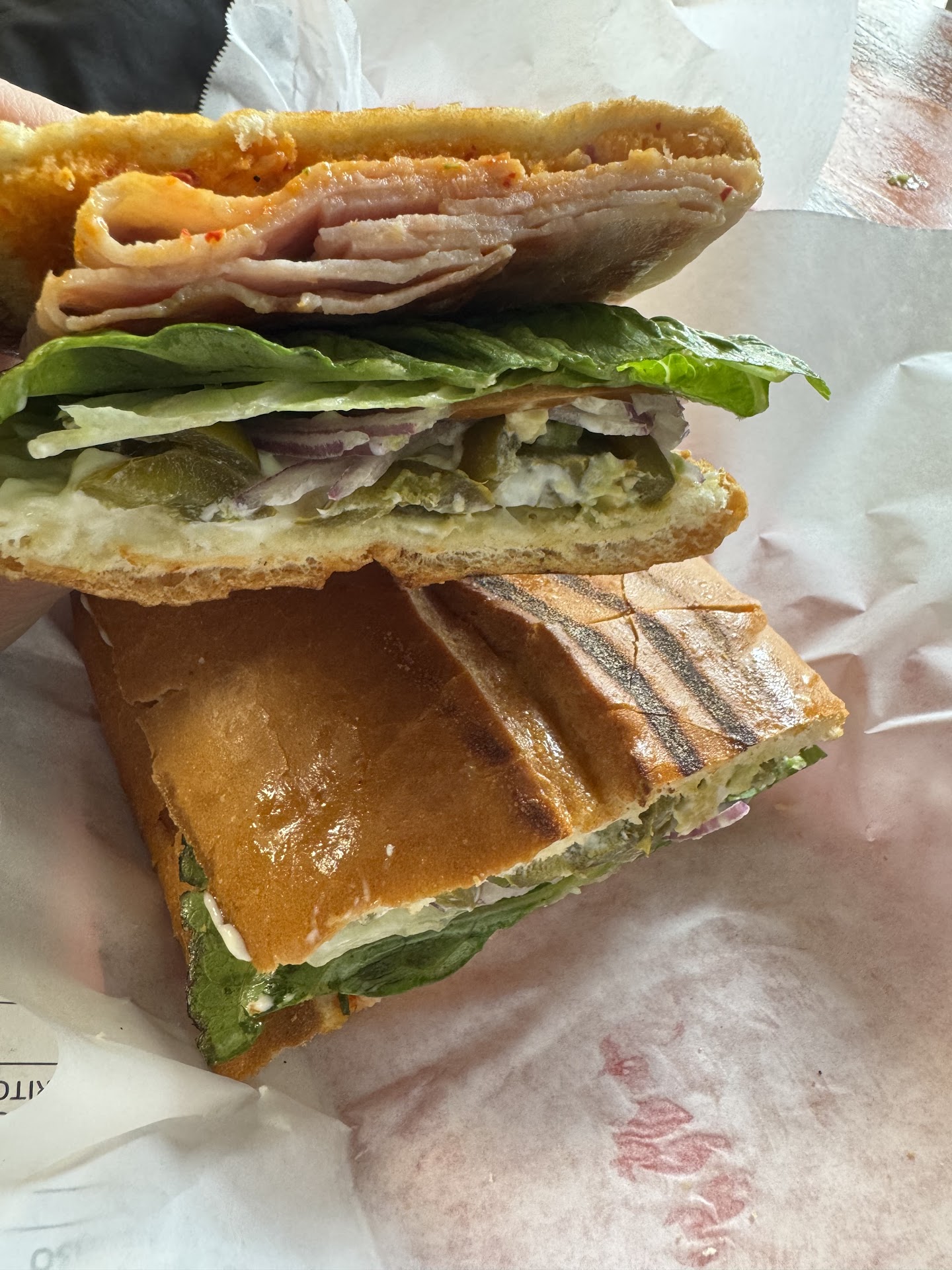 I always get the torta Cubans super. Comes with chorizo, egg, ham, and either fried chicken or...