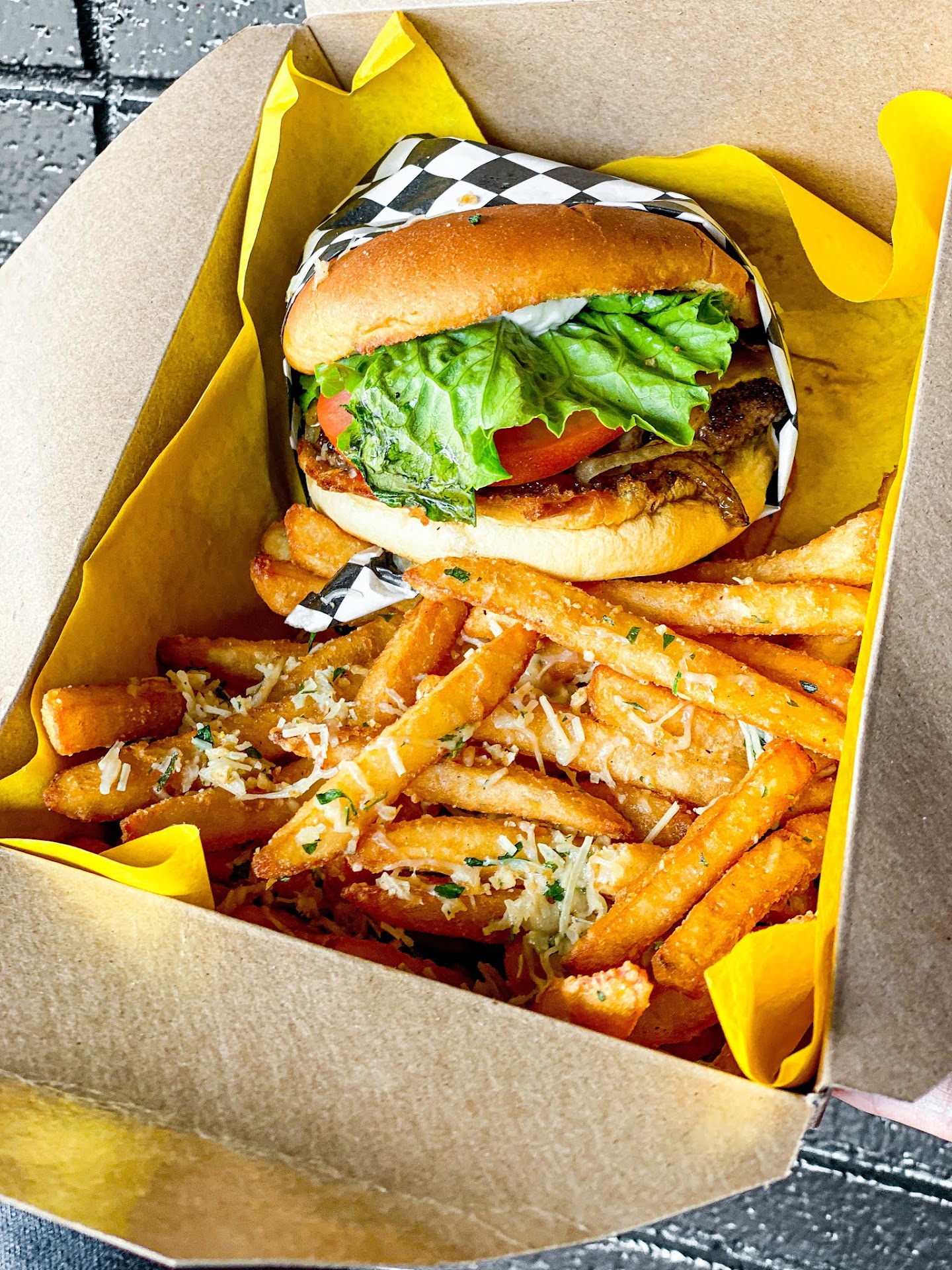 Moving on to the fries… don’t even get me started. Those French fries were so addicting. You cannot go to Me So Hungry Too without getting 1 or 2 orders of their fries. They were fried perfectly and the inside was nice and fluffy while the outside was so delicately crispy that it was extremely satisfying to eat and hear the crunch. There was a garlic Parmesan topping on the fries that wasn’t overly salty and even if you stuffed some of the topping and the fries inside the burger it still worked so damn well together. We were eating on my car in front of someone’s house and they could hear us enjoying our food so thoroughly that they literally asked where we got our food and we watched them walk in and back out with their own burger and fries. I definitely recommend you to ask for a side of the Me So BBQ Sauce so you can dip your fries in it too!