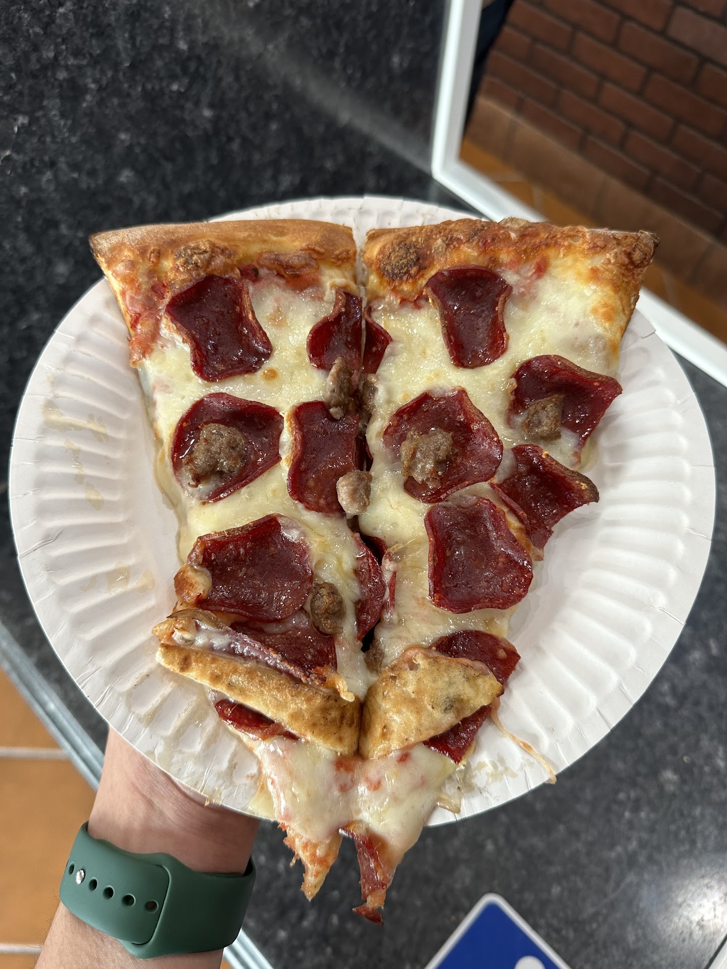 🍕They have pizza by the slice 🍕 AND they’re open late! Slices are pretty well priced, especially for the quality and quantity. Pictured is 1 slice, cut in half. All meats are Halal and the crust was good to eat solo. Tried a buffalo wing too—still held some crisp after sauced! 1st time trying Halal pepperoni (beef) ever! For other newcomers, I like that it’s not as salty as standard porky pep and has a deeper meaty flavor.