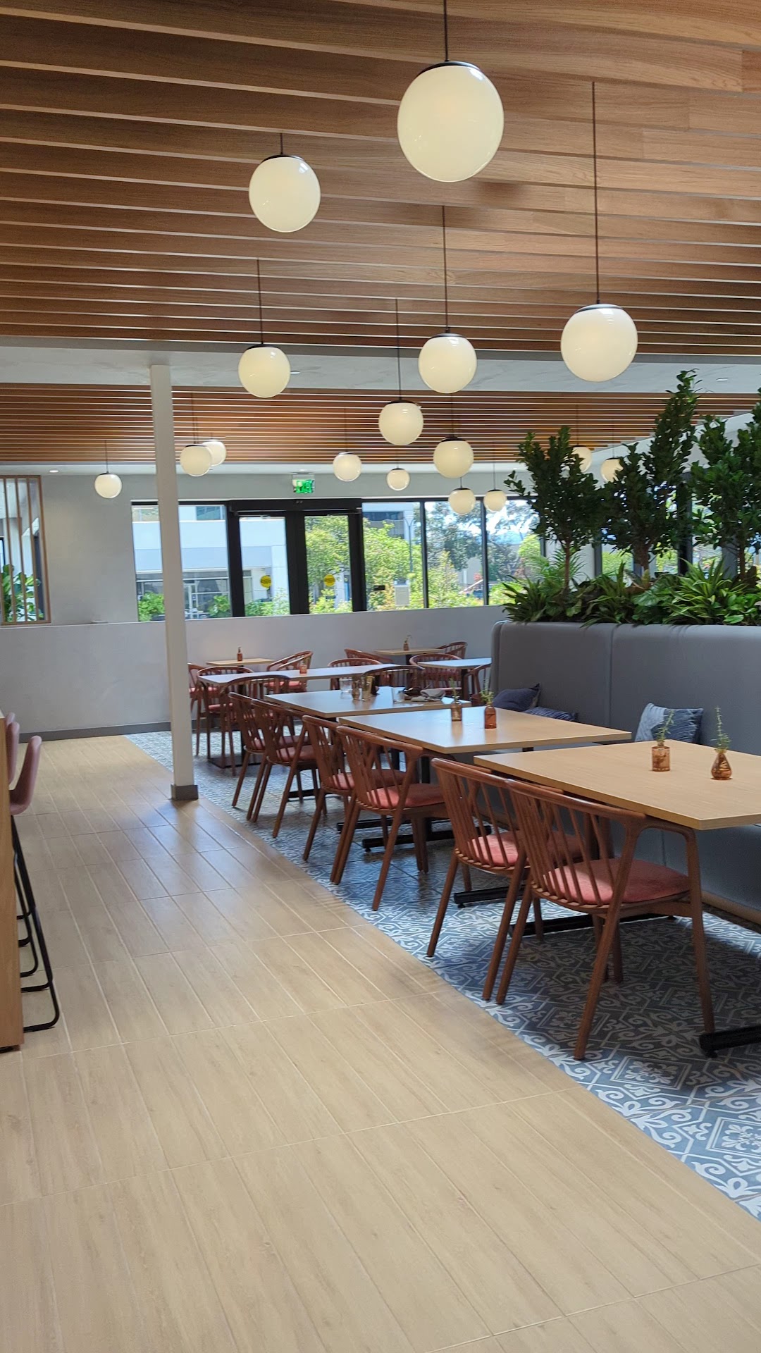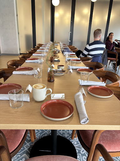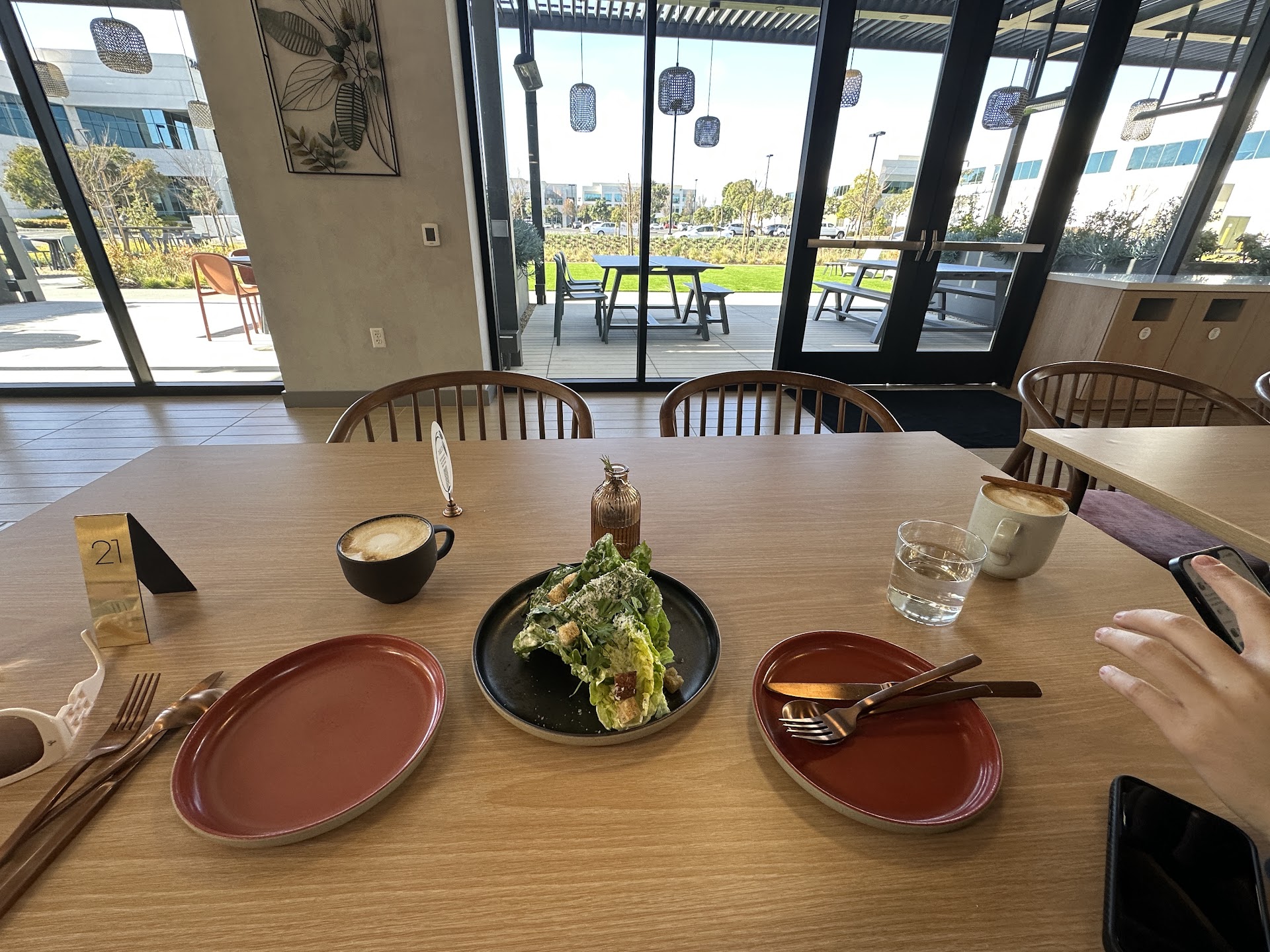 First time visiting today . Beautiful modern comfortable space , relaxing feel, plenty of free parking , easy access off 101. Ordered margherita pizza , cappuccino, and ceasars salad. Salad was little gem lettuce & presented well, creamy dressing, not too acidic. Cappuccino was fine. But the big disappointment was the pizza. Worst pizza ever. The tomato sauce was thick and had no depth of flavor- tastes very acidic. Reminds me of a tomato paste out of a can. Aside from about 4 or 6 blobs of mozzarella, the rest of the pizza has no cheese. The whole pizza fell flat. Hate to say it but a Costco pizza is better . Hope the kitchen puts more effort into improving the pizza, the sauce needs a LOT of improvement. or remove pizza from the menu. I would come back in the future just for coffee and a relaxing space to meet/ work. May try one of the side dishes. But no pizza even if it’s free. Note: since it’s located in an office park area and caters to the offices nearby , only open...