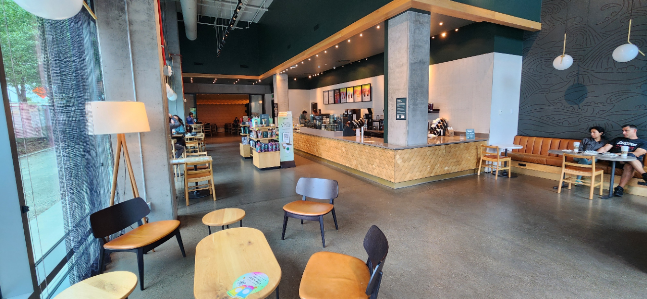 Read moreOne of the nicer Starbucks in the Bay Area. Good place to work, clean interior, lots of seating inside and outside. Clientele are mostly biotech workers and visitors staying at nearby hotel. Baristas are friendly and often come around with free samples. No restroom in the actual cafe, it’s through a rear door and down the hall. Free parking available in the adjacent garage. Main gripe is the music can be quite loud and people bringing their dogs into the store. Beware of the small circular tables near the entrance in the early morning as the rising sun will beat right...