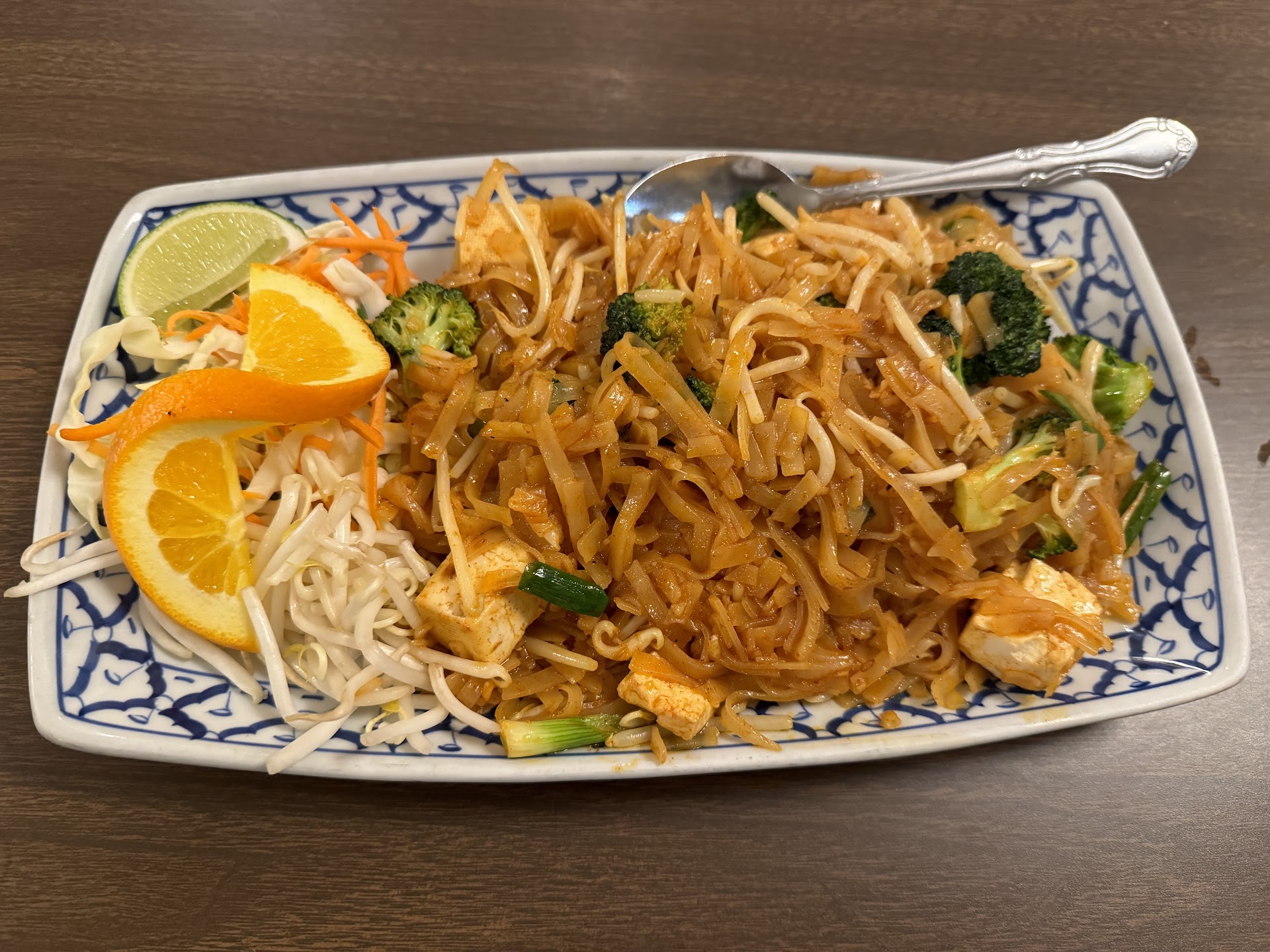 I agreed with a lot of other reviewers that think this restaurant's thai food is the most shockingly bland thai food we've ever had. We've never had bland thai food before. I wonder if those good reviews are fake or those people like bland unauthentic thai food or they have 2 chefs (1 good & 1 bad) 🤔? Based on our dine-in experience at the restaurant, they do not have authentic thai food & are very expensive with small portions. Everything we ordered was bland & barely had any spices or flavor. Papaya salad was somewhat spicy but didn't have much flavor. Chicken yellow curry & shrimp tom yum soup were very watered down & bland. Yellow curry portion was small. Pad se-iew beef was also bland & had regular broccoli in it instead of chinese brocolli like other thai restaurants. Chicken satay skewers were small, somewhat dry & bland also. Thai fried rice was also bland. Thai ice tea was not bad but too sweet. Our guy waiter wasn't very welcoming or friendly to us but seemed to be pretty friendly with the regular customers next to our table. We were still hungry after because we didn't eat that much of the food & their portions...