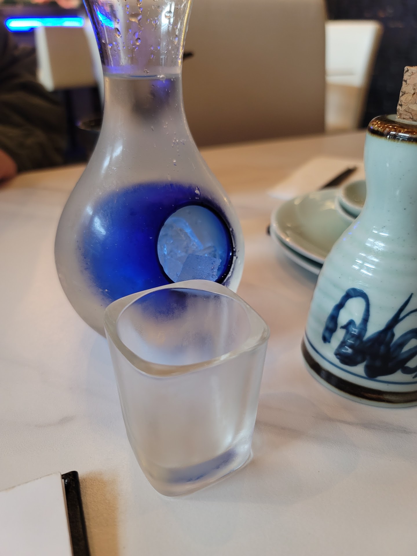 Cold sake - It was a cold and rainy day, but for some reason, it hit the spot. It came in the cutest yet stylish bottle, where the ice to keep it chilled was right in the middle. I'm curious to see if next time they have something a little smoother.
