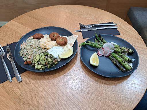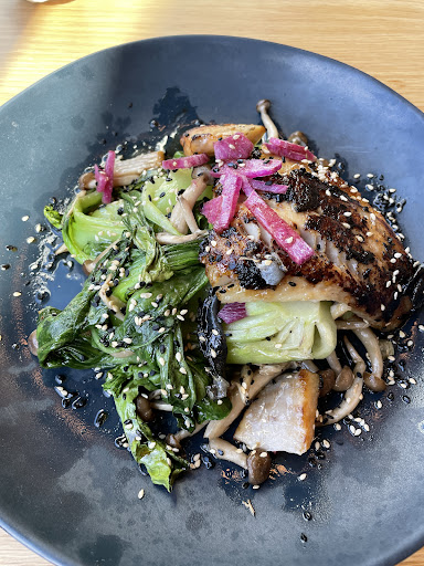 How lucky for those who work at Gateway of the Pacific to have this restaurant! Beautifully designed open space restaurant with excellent food. Each dish is made to order but still relatively fast. The shoe string fries were among the best ever - crispy but not greasy (I only got a few since my husband ate it so fast). Cod was fresh with lots of vegetables, perfect for me. Hubby said he liked his salmon burger and would order again. Meant to include photos of the desserts but was too excited to dig into the nutty brownie with oats and the double chocolate cookie. Yum. Ideal for take out, too if you have to rush back to the office (order ahead).Very friendly staff -...
