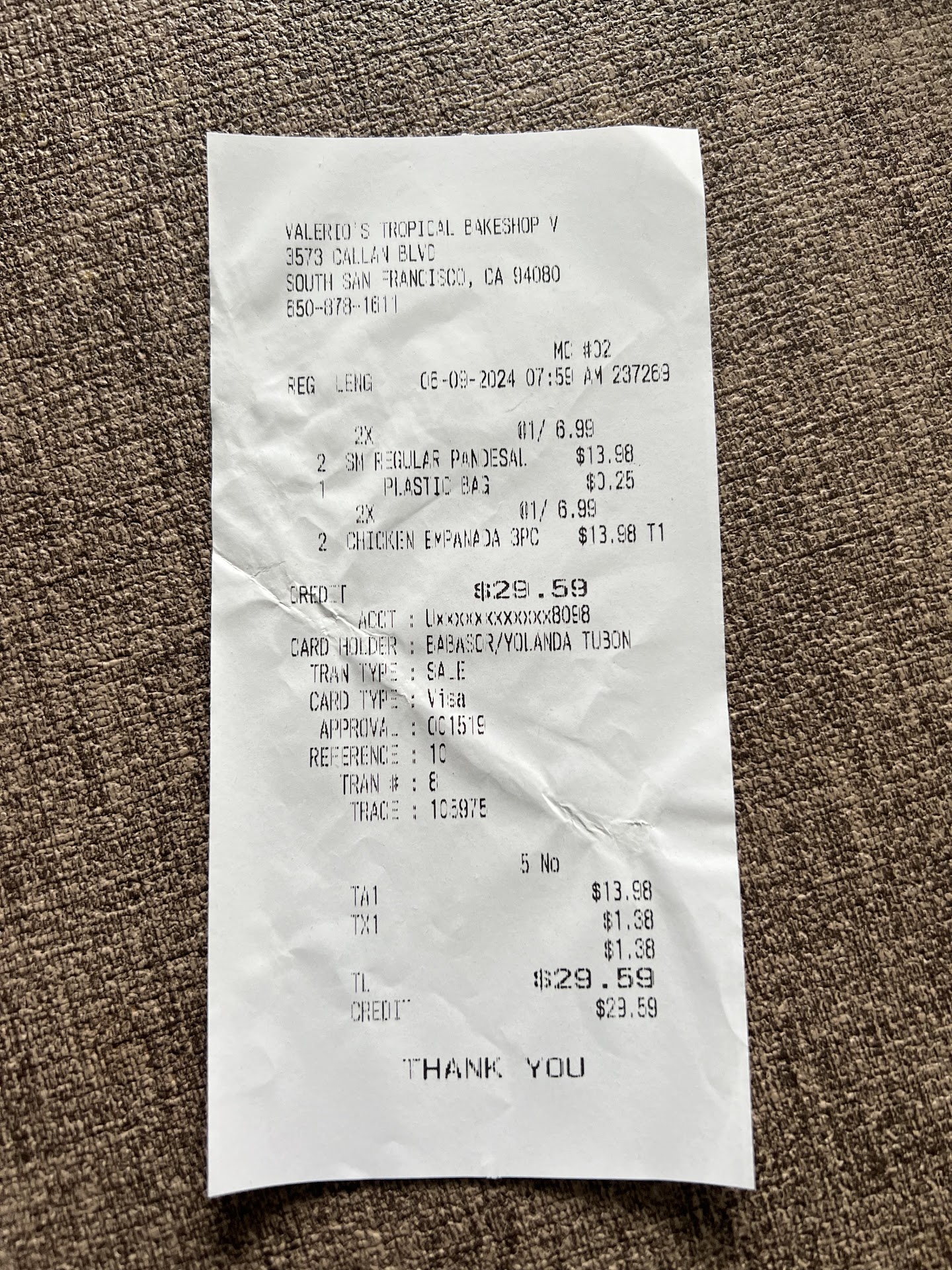 Read moreEverytime i go to California, I make sure to buy something to bring to Canada for my family from the bakery. I bought few items yesterday from Valerio's South San Francisco rushing to the airport because of my mom's request. I felt very disappointed when i tried the Hopia Baboy, that the quality isn't great, i am eating a lot of bread not much filling with the cost of 7.95 4pieces in a bag. Cost is so expensive, with the quality of food. It feels like it is a rip off. You should check the item first before sell it to your customers so you don't get a bad review. Make sure it is worth for your customers hard...