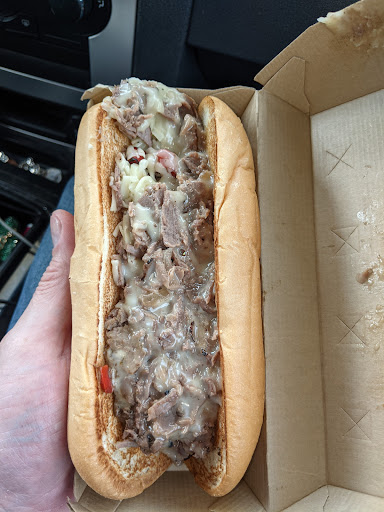 Grumpy! The girl at the front counter was very grumpy and short with all the customers she appeared to be the manager and appeared to be very overwhelmed I ordered the half pound French dip with extra meat which I have ordered before it was obvious but I only received the half pound when I questioned it she told me that's what it was without even looking at it that made me more upset. I will post photos here the sandwich with the white background is the one I received today which I feel is made wrong the one with the dark background which is a steering wheel is the one that I ordered the other day in Clear Lake Iowa can you see the difference I can the one it from Clear Lake we couldn't even get the box closed I was so impressed today no problem...