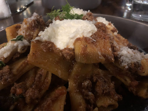 What could be improved on: flavors. We both thought the flavors were a little bland and lacked any depth. Don't get me wrong, the food was good, but it definitely wasn't memorable. (We ordered the Rigatoni Bolognese and the Shrimp spaghetti. We also started with the Charcuterie with Creminelli meats and cheeses). Also, the restaurant isn't very comfortable. The benches and chairs seem more geared towards quick service breakfast and brunch.. Not a comfy dinner. I'd say this is a case of 'form over function' - it looks good, but not that comfortable to stay at. I guess it will keep the crowds moving.