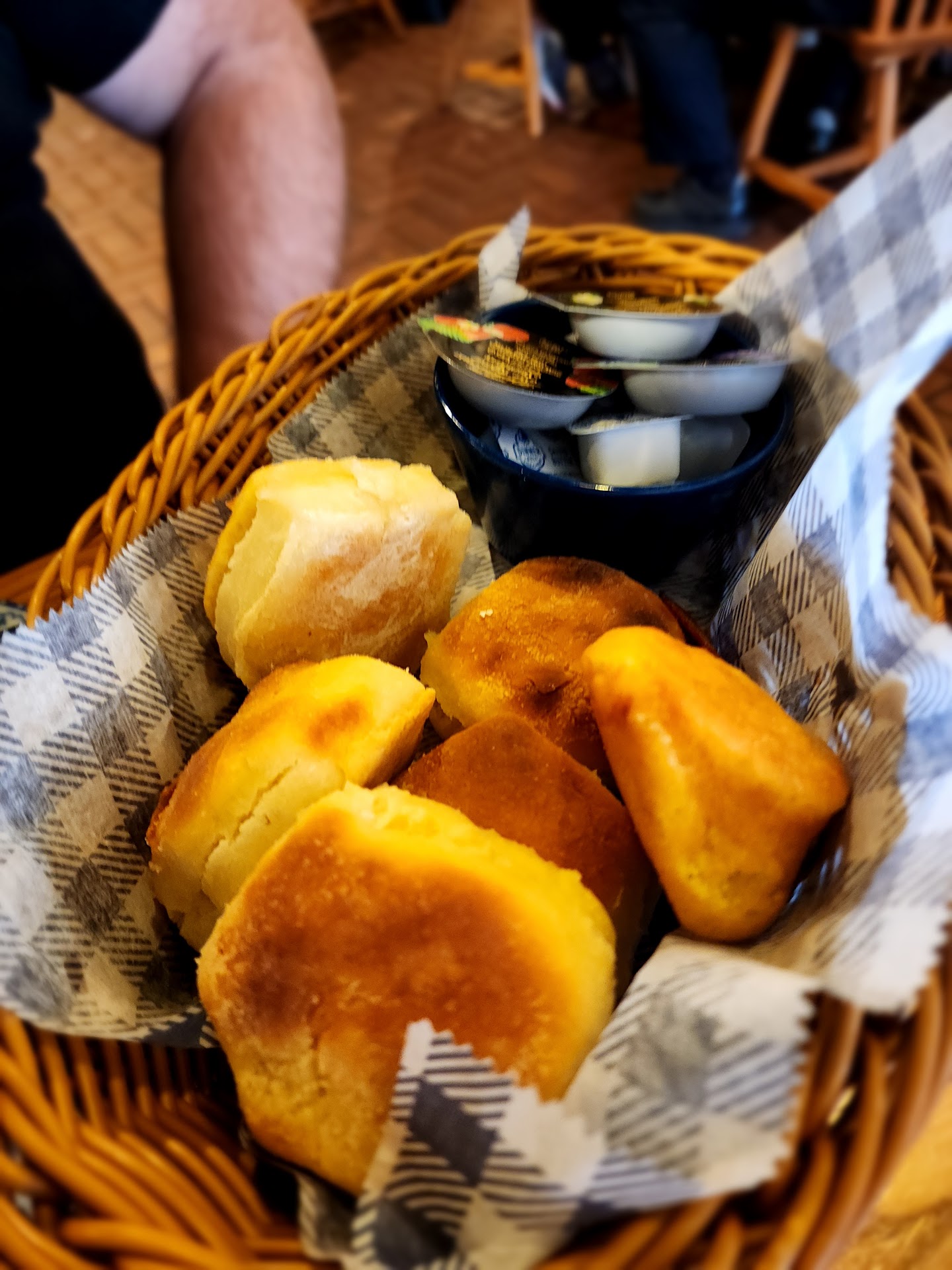 Ā Ā Ā Read moreSpectacular failure for take out. Let me preface with I always tip for to go when I order and I picked up within my pick up window. Also we are working on cleaning up a Rental house, so had no utensils, and no way to heat up food and no way to add ice. I am currently eating cold meatloaf, cold Mac and cheese and cold mashed potatoes and drinking room temperature tea. I got to the restaurant and had never had their to go before so I went in and was actively ignored by the cashier. She left the desk I was waiting at to seat people, then took a phone call all while I was standing there with no idea if I was even in the right place. I just wanted to ask if I was. Finally she tells me āgo check over thereā and gestures to a stand. So I grab my bags and ask specifically if there were utensils in the bags. Because we had no way to eat otherwise. I was told āoh yeah. I immediately notice the drinks have no ice and look warm, but I donāt have time to mess around with this with 5 hungry people waiting on me. I get back, no utensils. Drinks are warm. We have no way to eat. I call twice, no answer. I have to go take utensils from my in-laws (who have COVID) place because itās closer and Iāve got three hungry kids all staring at food they canāt eat, watching it get colder by the minute. Also no jam for...