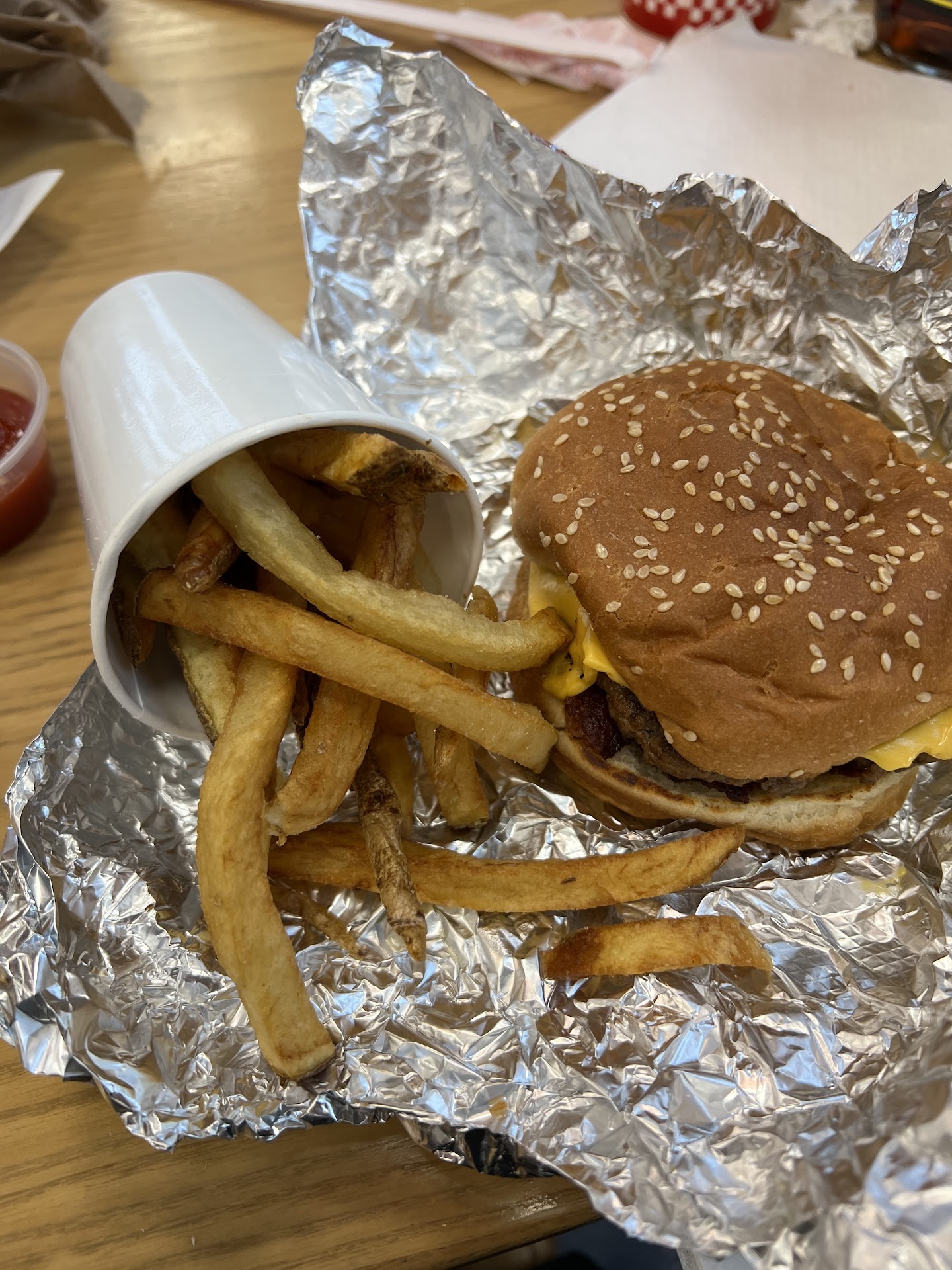 Typically a 10 minute or less wait, you will have your burger ready at the counter with a smiling face to say enjoy before you tear into it. As mentioned before, a little fry is waaay too much and if you go towards closing they will heap even more fries in the bag. Going off of this, a small burger is also plenty for me and I weigh 240 so I can definitely eat. Throw in one of the new coke machines that allows you to make a Frankenstein's Monster of a drink and you're good to go.