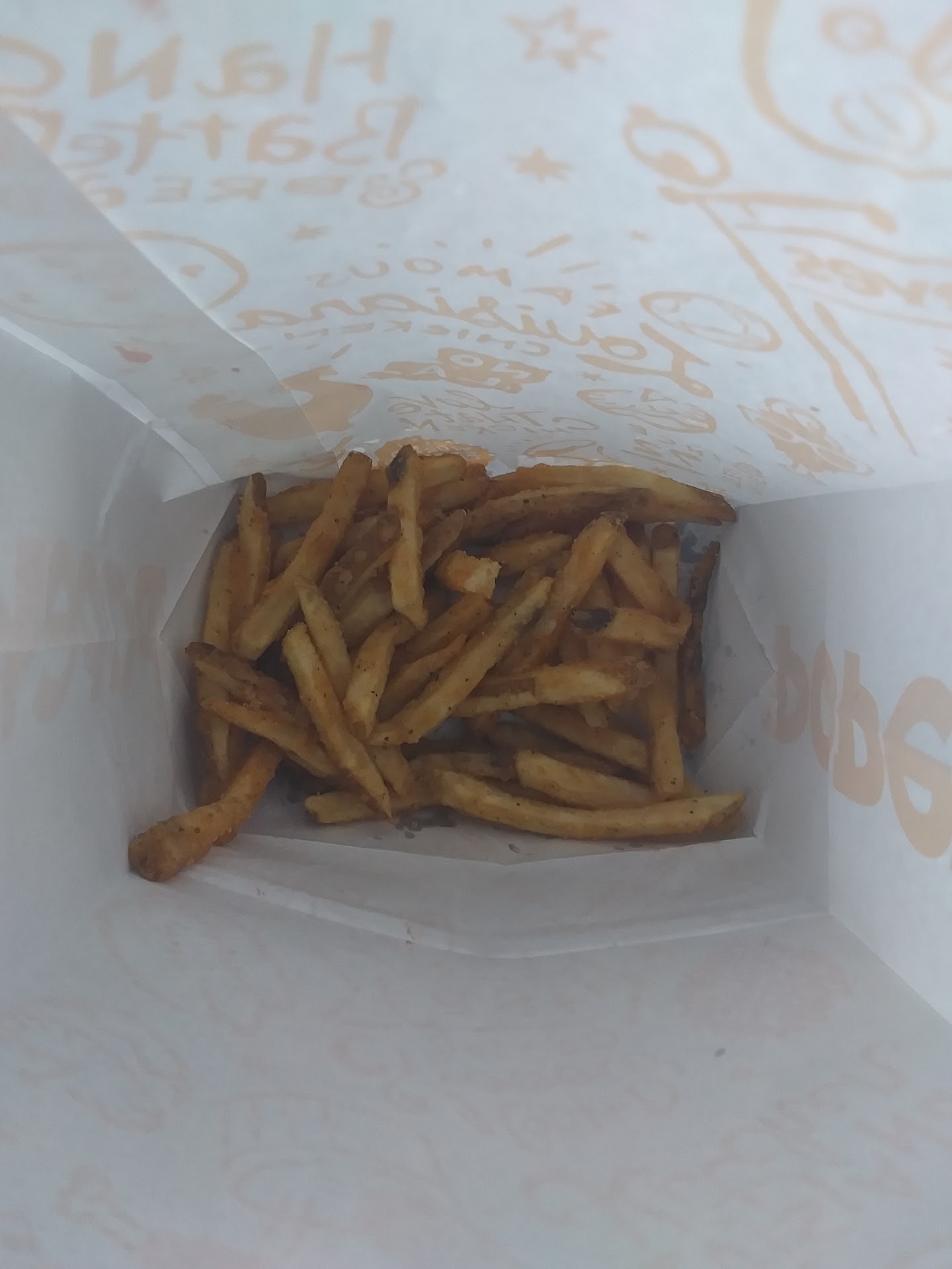 That's definitely an item from another known chain out there. But the popcorn shrimp........ tiny baby shrimp so mostly breading, but shoot. It's great. Absolutely great. Dunk the shrimp in cole slaw!! Move over sushi dates with the boyfriend.. I want Popeyes!