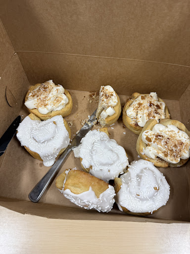 Read moreThe Honey Bean Bakery & Coffee Cafe is a light filled and warm nook of a space that is filled with the delicious aromas of coffee, tea, and a case full of amazing cinnamon rolls, cupcakes, cookies, and whatever other baked delights are available that day - always something that can be checked in advance via their Facebook page. The owner and her staff are always exceptionally friendly and helpful. They are very often at area festivals and are in high demand for their focaccia bread, sugar cookies that are made in several different sizes and beautiful designs, among other treats. I also am a big fan of their stickers, small business coffees, chocolate, and other treats that are packaged...