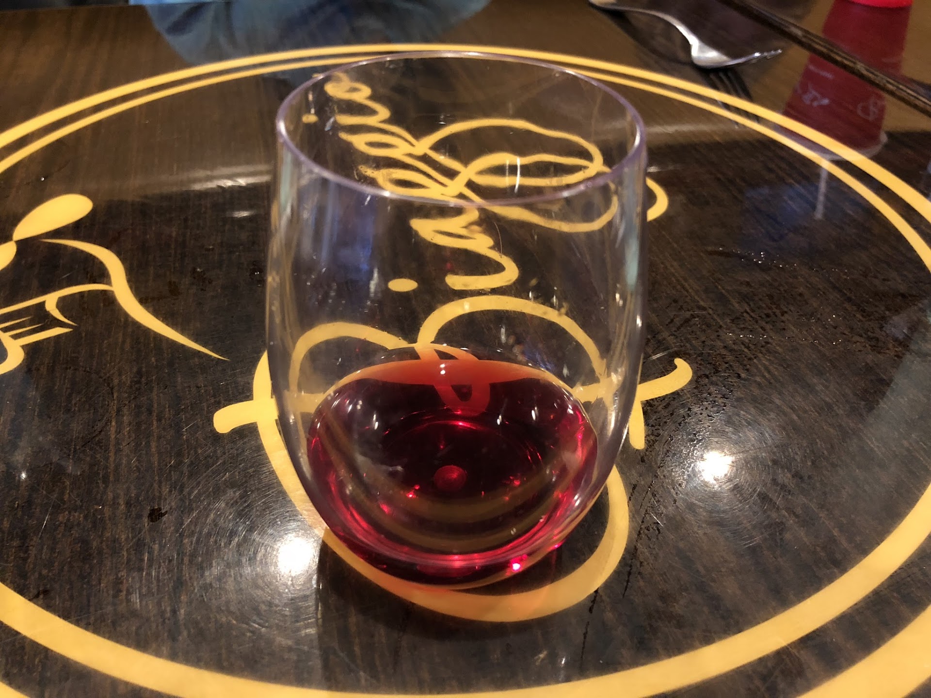 Initially I was excited that they offered complementary Randy or white wine. Free wine! At a restaurant! Count me in! Unfortunately this wine Also, the line was served in plastic cups which was strange.