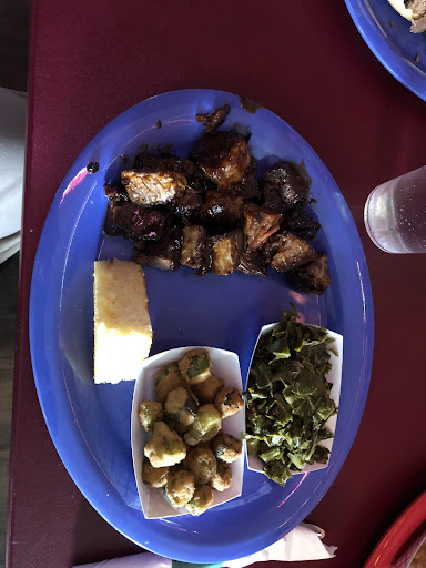 All right so I was not prepared since this is my first visit when I made my order for the half chicken and half rack of ribs with the brisket pieces Jesus h Christmas the size of this platter for 30 some bucks was just nuts it was huge and I'm not even going to lie to you I barely ate two of the ribs cuz they were monstrosities, and I ate some of the chicken which I'll discuss down below I ate all the beef brisket that was delicious fired corn very good and the garlic mashed potatoes they were okay couldn't use more garlic.