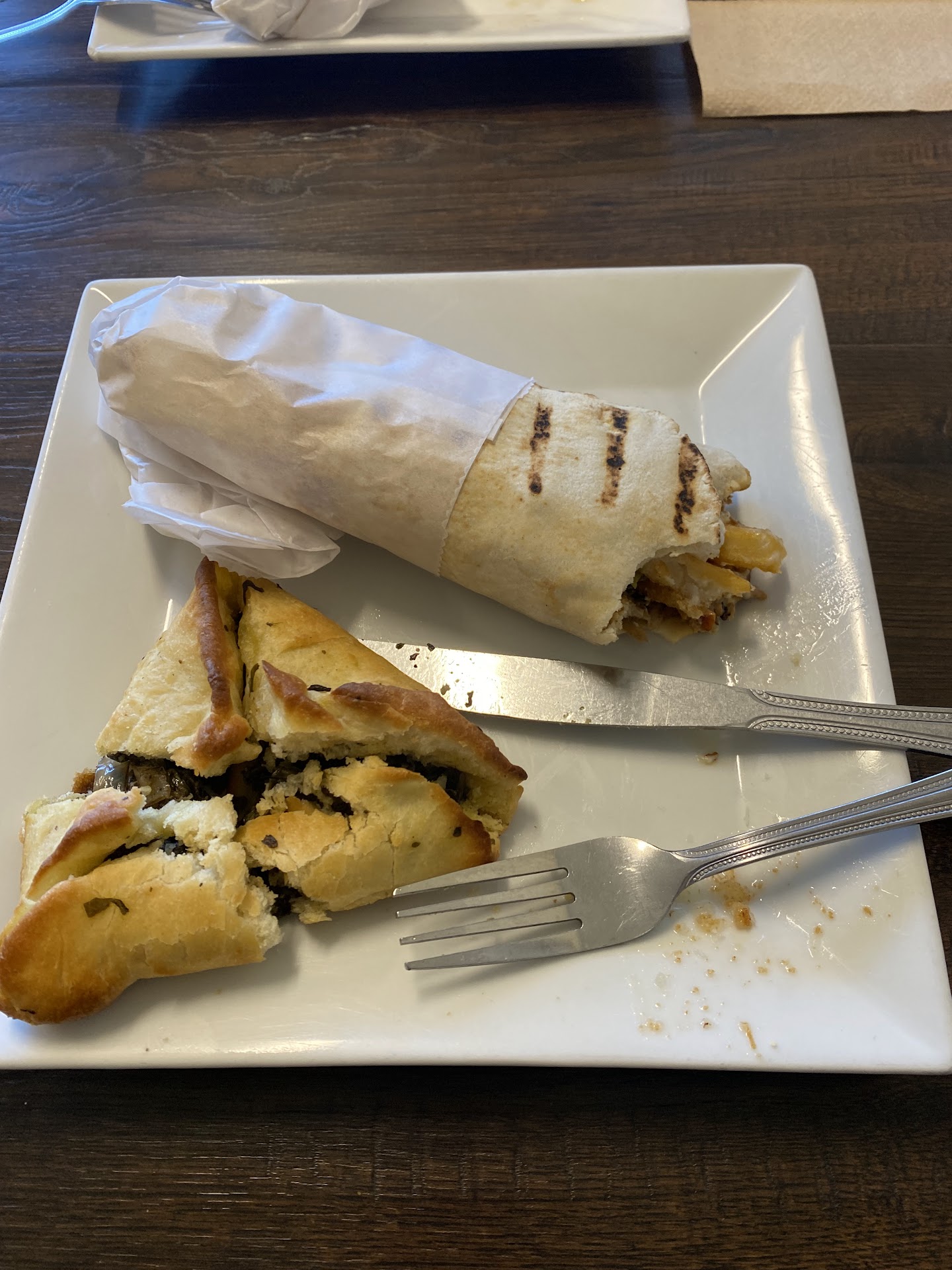 So the chicken shawarma (beef was suggested to me but I was just feeling chicken) came with rotisserie chicken breast, fries, pickles, and creamy garlic sauce. Absolute banger. The wrap was grilled over open flame so it added flavor and texture. The garlic sauce was delicious and heavy on garlic flavor. Lots of delicious juicy chicken. And I always say that the addition of potato to things like this really makes it more creamy to me once it blends in your mouth. Everything tasted super fresh and seasoned perfectly. They added a few bites of a dessert that I could honestly take or leave. It was sweet on sweet and I’m not huge on stuff like that.