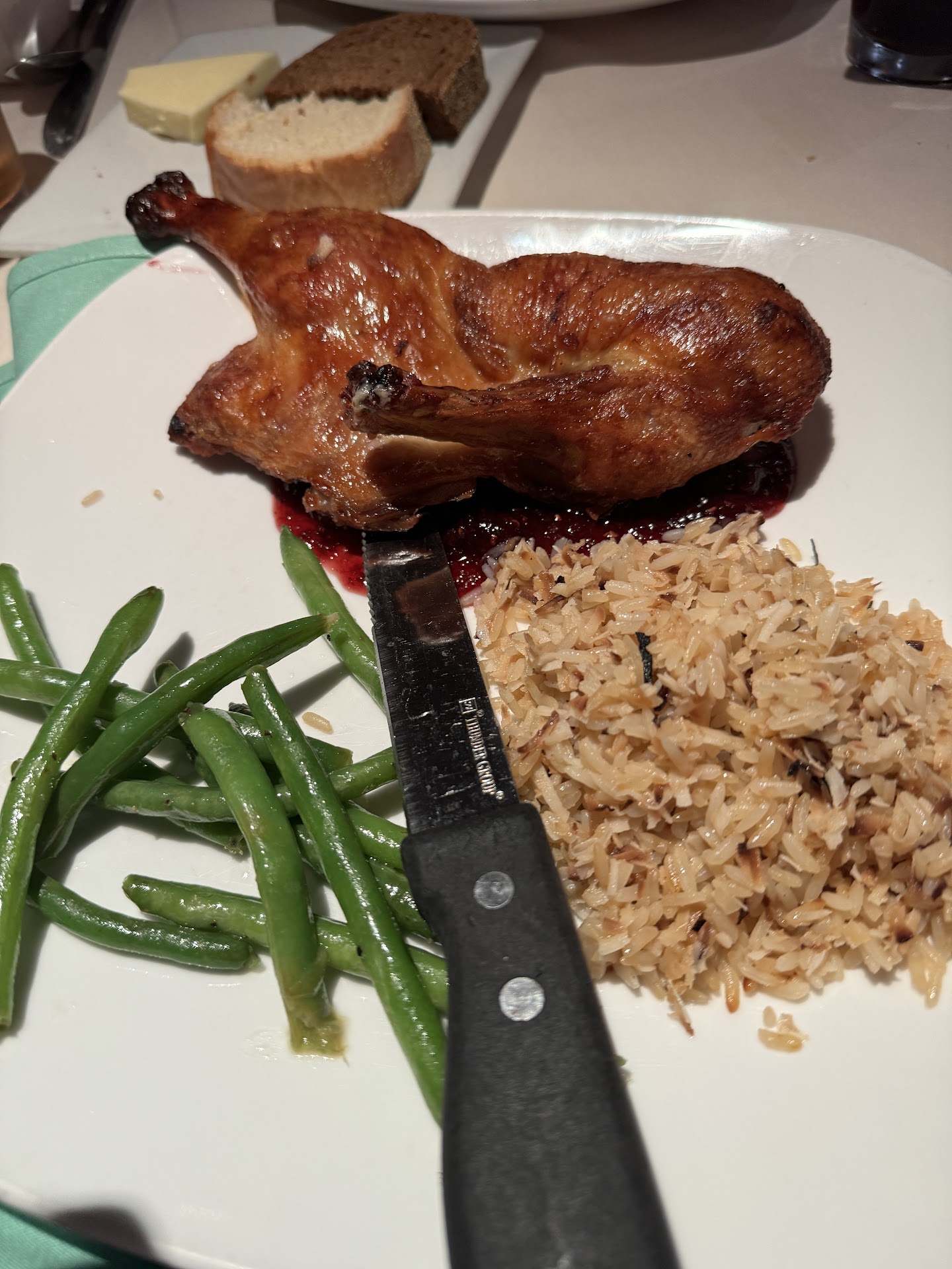 I ended with duck in raspberry jam, with “coconut rice” an odd dish of pilaf and shredded coconut. Only in a place like EPA, can one use a popular dish name, but deliver some new concoction.