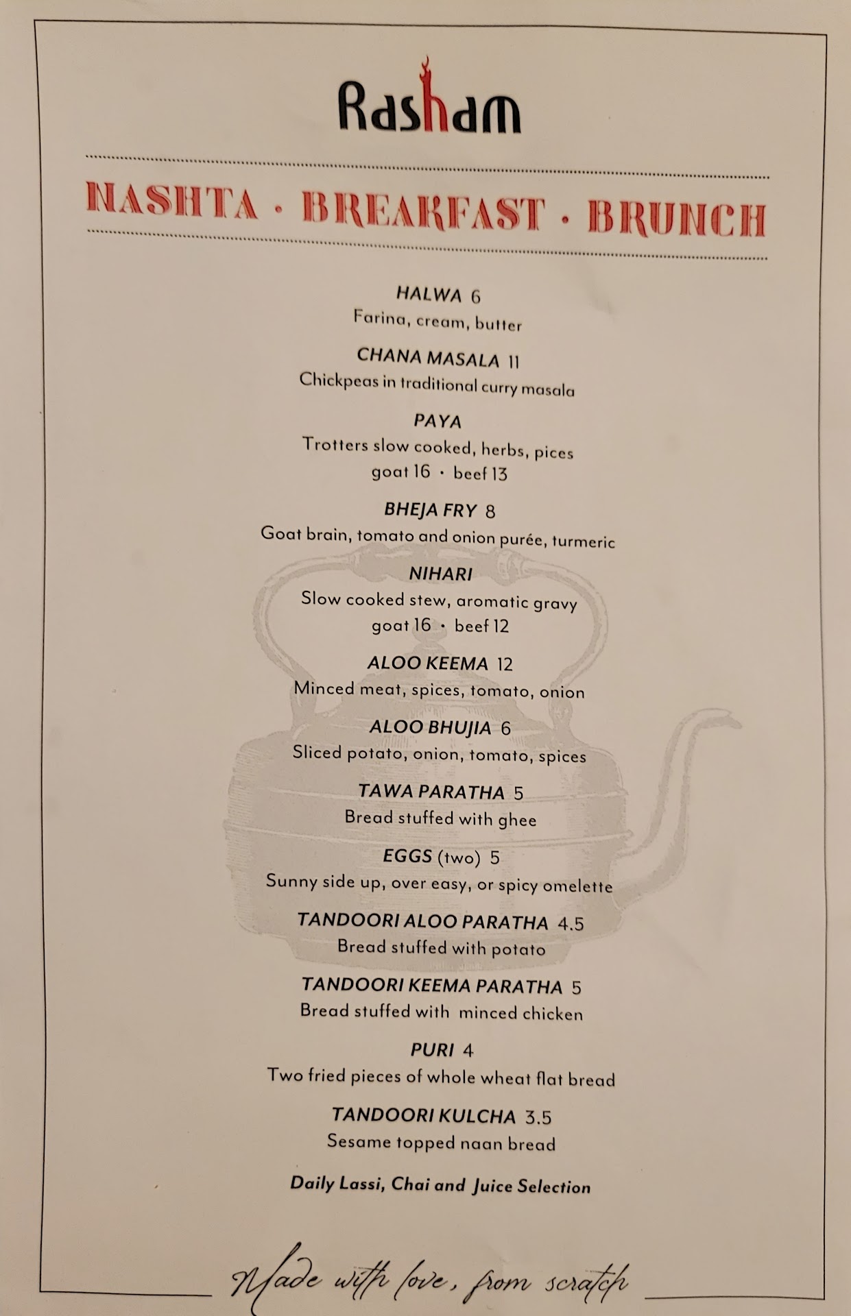 It's now our third time patronizing Rasham restaurant, the food is beyond words amazing. While we would have loved to try more variety of dishes, our go to dishes so far have been: chicken sheesh kebabs (tender succulent juicy minced chicken well spiced and cooked to perfection) chicken karahi (doesn't hold back on the spice, this reminds us of our first time we had authentic Karahi in the middle east) goat korma (this used to be my favorite Pakistani dish and I just love my meats) garlic naan (Rasham does it differently in a good way, the garlic is not on the surface of the Naan but infused and in between the layers of the Naan ensuring every bite has the garlic flavor)