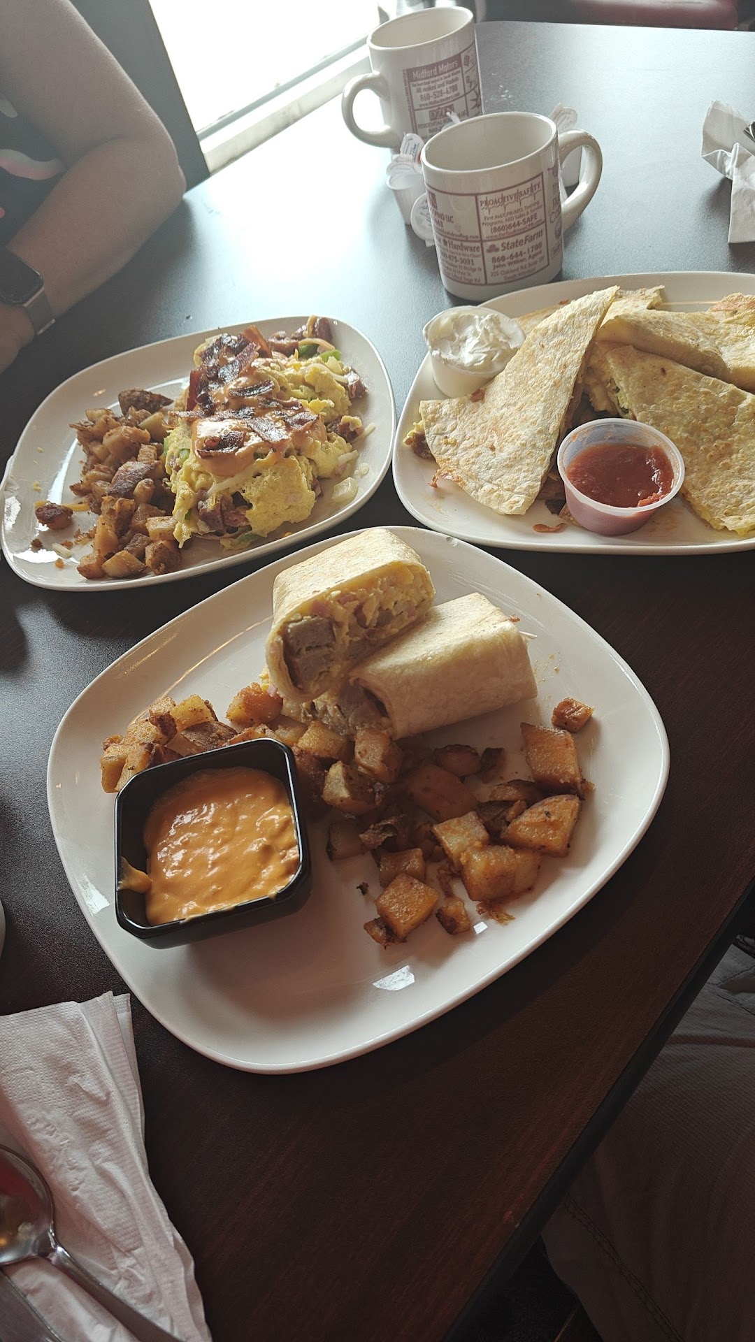 Atmosphere is nice. Very cozy and if there's not a large group it's on the quieter side. There was a big party of women that looked like a group of friends that got together for breakfast. They were so cute and fun to watch as they socialized. They brought a whole vibe to the restaurant. When they left it got really quiet with several tables of two eating.