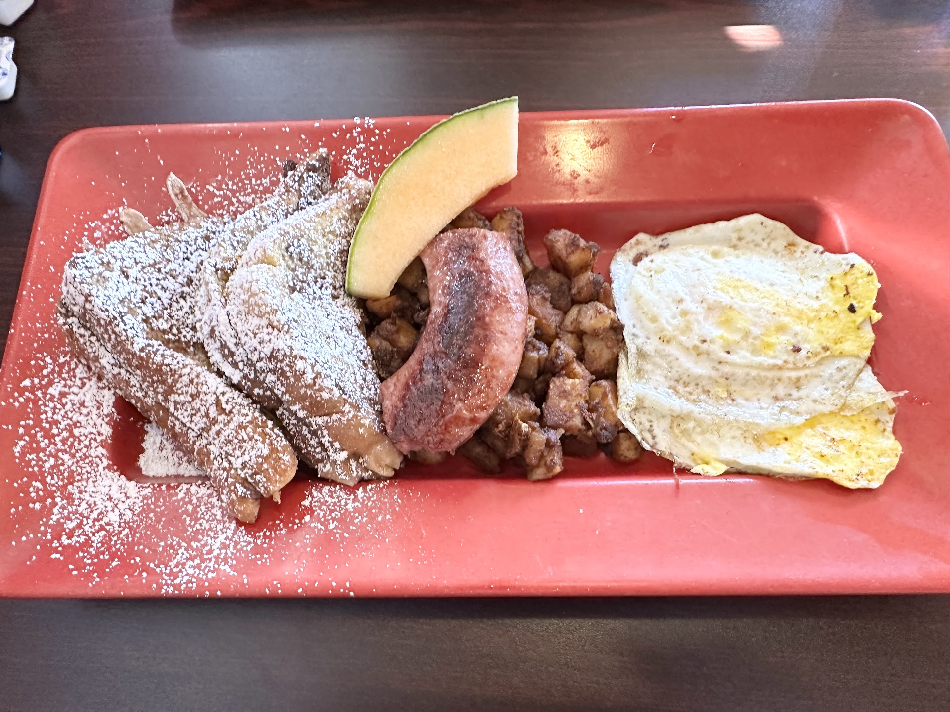 We had a great breakfast here. Their home fries aren't deep fried but if you ask for extra crispy they put a nice sear that creates a crust with extra flavor on the potatoes. Pancakes were fluffy and cooked to perfection. French toast was delicious. Eggs cooked exactly how we ordered. Coffee was nice and strong and kept flowing.