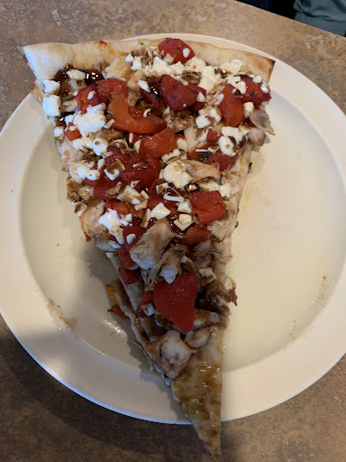 I would really like to give 4.5 stars. We stopped in for a slice of pizza. So many options! My husband got a 3.95 gourmet slice overflowing with chunks of chicken, roasted red pepper, onion, mozzarella and a balsamic glaze. It was so generous that the thin, crispy crust could not hold it all. I got a 3.15 slice of tomato pie with fresh mozzarella, some dabs of a sweet tomato sauce, parmesan cheese, oregano, oil and basil. This slice could have used more topping—especially tomato. We also got a .50 garlic stick with tomato dipping sauce. While eating in, I could see pizza crusts being tossed in the kitchen. The menu says all pizzas are fresh and made to order. There is an extensive menu from appetizers to lunch items (and specials) to chicken, veal, seafood and pasta dinners. We will be back to try more of the menu! I can see why this place has been around since 1988 with freshly prepared food, generous portions and...