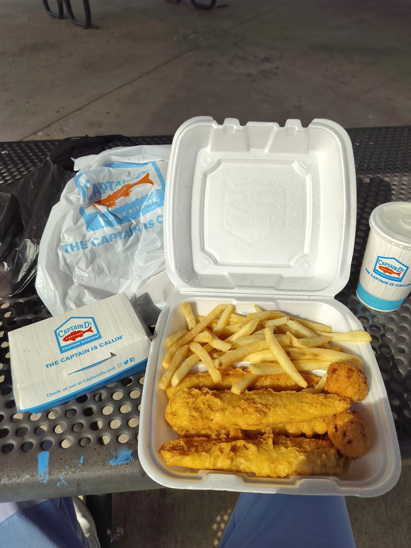 Read moreFirst and foremost, they have a B rating from the health department. There were a whopping TWO people running this entire store. The person at the register looked barely a day over 15.. As a general rule, I try not to go to a restaurant an hour before closing and prefer to go inside so I'm not burning up my gas. 1. It's rude to show up right before close and 2. The store is prepping to shut down. As such, you will get what is left on hand which is normally the bottom of the barrel. As a restaurant manager, it takes a couple of hours to shut down a store, even longer if you're working with a skeleton crew like this store was. I've ALWAYS loved Captain D's but this time the food was burned. This rarely happens but given this time of the year, I don't always have time to cook at home. All in all, the food was ok and we only came to this restaurant because the Horn lake one left us waiting at the menu in the drive through line for HALF AN HOUR not once but TWICE with no response. As we were driving off, we saw the one employee standing around chatting with someone inside... So this restaurant gets an extra star because the alternative has been as garbage as Horn Lake is. Absolutely would NOT recommend going to the Horn Lake...