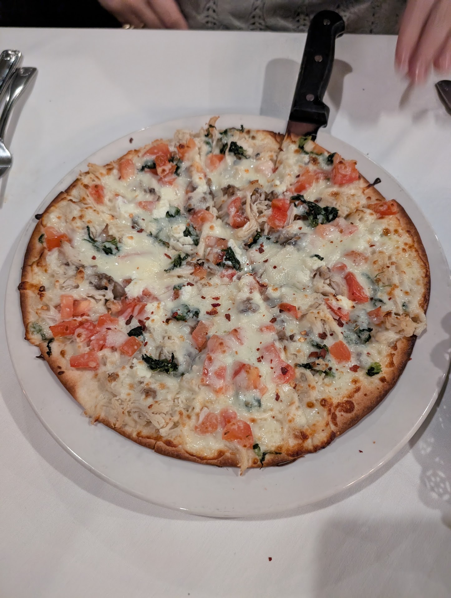 Read moreThe lights were low and there were hushed voices all over the restaurant. Pretty bar that is divided from the rest of the seating. There were a couple of curtained private tables I could see from my seat. My server, I believe his name was Leo, was very friendly, knowledgeable and right on target. I had the Mezzo Mezzo which was 1/2 order of Beef Ravioli and 1/2 spaghetti and Meatballs. Also had some garlic bread that was reminiscent of bread from Pasquale's when I was a kid. Wife ordered Crab Cakes that were top notch and a delicious Caesar Salad with croutons made from the same bread I mentioned earlier. I thoroughly enjoyed my experience. Food came out just as it should. The kitchen was on point putting out everything in order all over the store. My wife also ordered a white sauce chicken pizza of some sort and the chicken was so tender! Last thing was a piece of chocolate cheesecake that was definitely homemade. Has that to go. Portions were heavy and I only managed to eat half of my main. The flavors truly took me back in time. Reminding me of various places I've eaten at over the years. There was a bit of The Venetian (Greenville, MS) in that red sauce. My wife and I both agreed, we want...