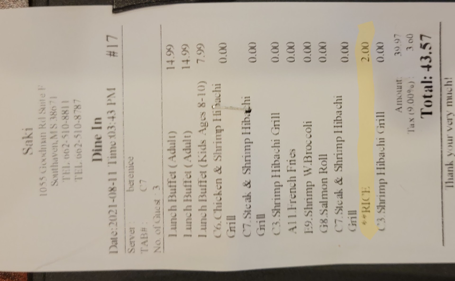 Read moreI really use to like this place. The food tastes decently good. But the policy is out of the way. I been here about 5 times and ordered online as well. Today will be the last time I get anything from here. I don't eat rice. I asked the waitress to not include it with my meal. She said it has to come with it. I said ok as long as I don't have to eat it, either way is fine. Every other time it wasn't a problem. They didn't try to charge me for the uneaten rice. Today they did. I explained to them that I asked for no rice and they said it HAS to come with it. And now they want to charge me for uneaten food. I said fine.. It's your establishment and you can have those rules and customers have to abide by that If they want your product, but I can't come anymore if you want to force me to eat your rice. And that would've been it. But the manager came over and told me last time she waited on us and I did indeed eat the rice. Which was a lie.. I told her. No I didn't eat the rice bc I can't so maybe she was mistaken.. She was adamant that I did. Which is why I said.. OK I'll pay and leave and won't return with my family again.. This was a very rude act from the manager.. Very impersonal.. The Hispanic waitress was very nice.. That's the only thing that made this last visit pleasant. I usually leave positive reviews for companies, but this one was unacceptable to accuse me of something that is impossible and be...
