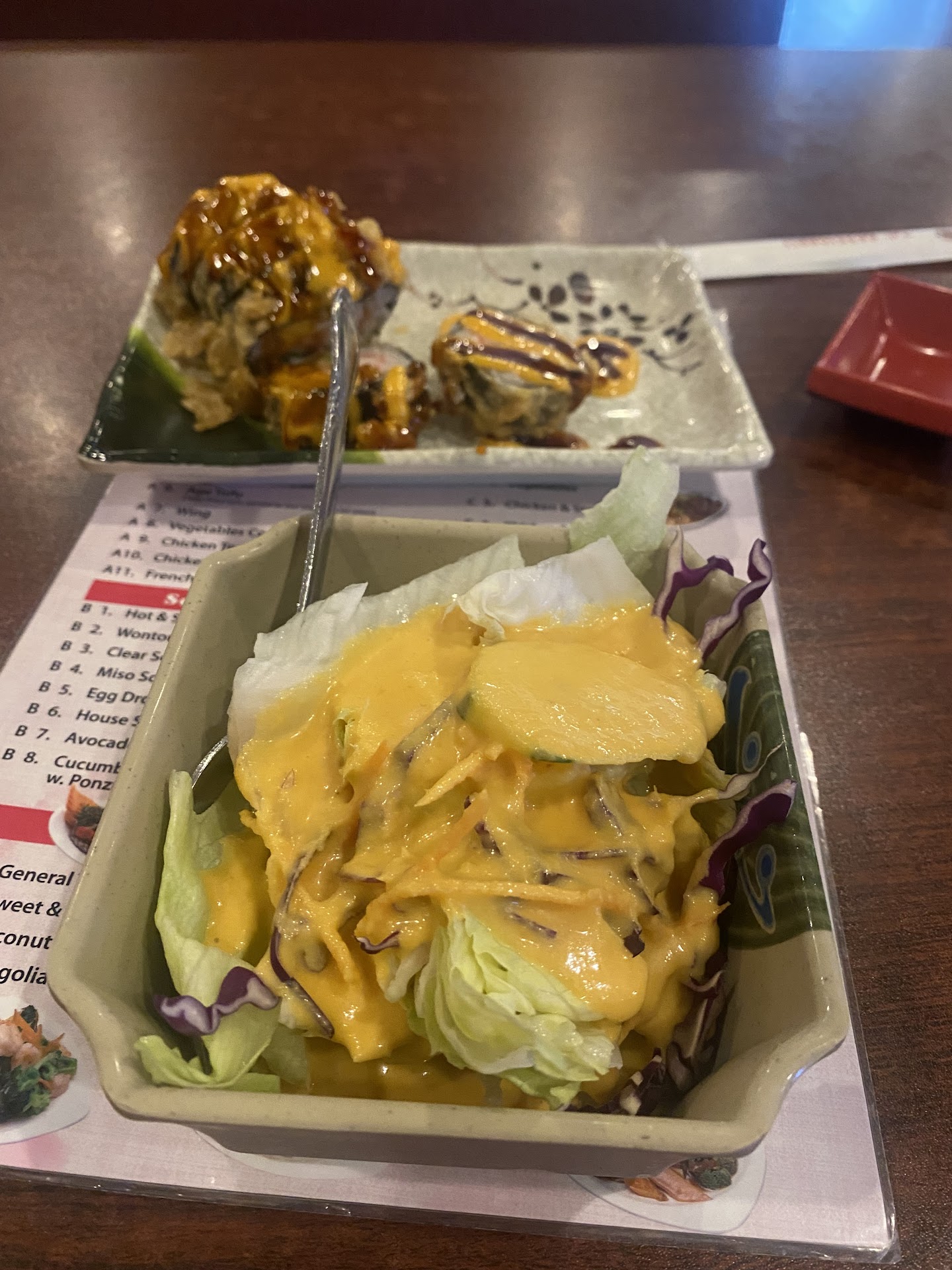 I’ve been to eat here twice this month. You can NOT go wrong with the all you can eat option for $25/ person. My review is specifically about the all you can eat option, as that’s what I had both times. My sister told me about the place and I’m so thankful she did. The first time I ate here was on a Sunday after church. They give you a laminated menu that you keep at your table. You can order everything at once or you can order it as you go. The sashimi was some of the coldest and freshest I’ve had in years! I ordered the salmon. So with the sushi/sashimi options & being all you can eat (AYCE), I wondered how they make a profit from this. *Also note this price is for an adult, prime/premium dinner pricing. During lunch & before dinner hours, AYCE option is $17 for adults. All day Sundays is premium pricing.