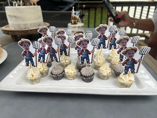 I made all of the toppers and put them on the top the day of.... but they wouldn't have looked so good without the icing and overall cake being perfect. It tasted amazing and I wish I had more right now as I think about it. Everyone raved over the cake and cupcakes. Everything was phenomenal and the prices were beyond unbelievably fair. I was shocked when I was quoted. I will be back for more soon! A huge THANK YOU to Cathy and SBC for making my son's 1st birthday...