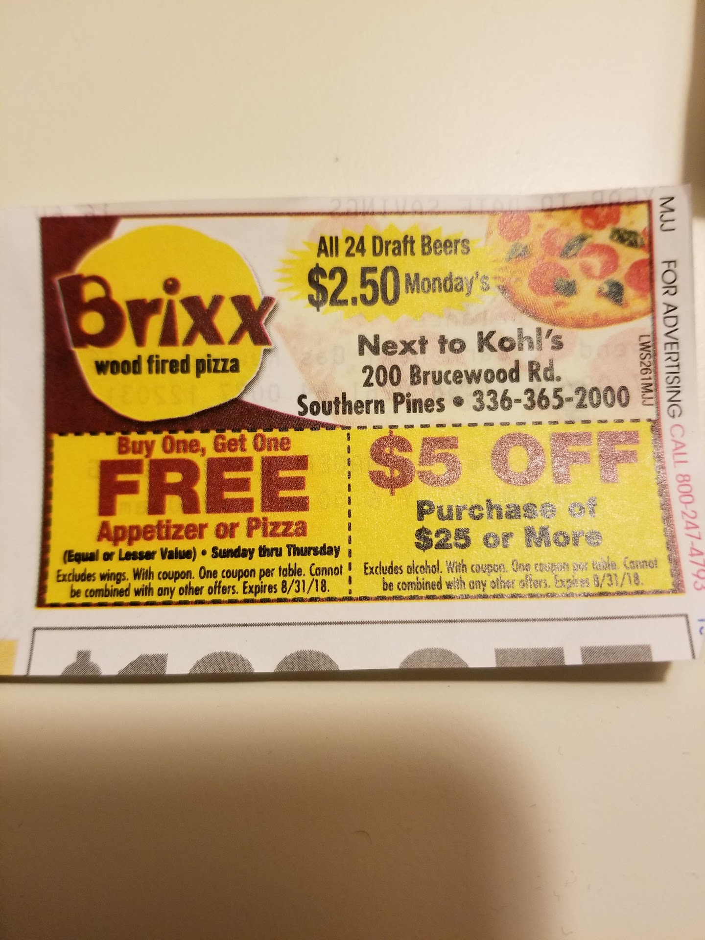 I understand "Brixx Wood Fired Pizza" is a franchise and that my experience here doesn't dictate what everyone else will experience at any other "Brixx" but I can say if you come to the Brixx in Southern Pines, you will have a wonderful experience --