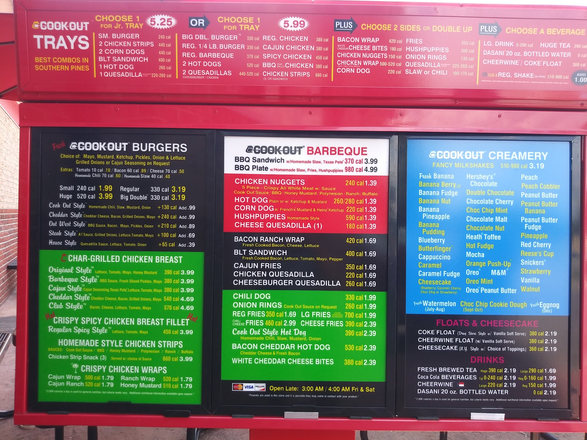 Ā Ā Ā Read moreI have been a fan of cookout for a long time. The amount of food for the price beats anything else in town, hands down. But the past three times I've gone to the Southern Pines location, I've been highly disappointed with my food. Today, I got a Cajun chicken sandwich tray with onion rings and fries. There were maybe 3 small rings and I wouldn't even qualify them as onion rings. They were mushed, broken, and not even crispy. The Cajun chicken sandwich was dried out as if it had been sitting out for hours. The meat on the outside of stiff and tough. I couldn't even chew it. I get it, it's a fast food restaurant. But up until recently I've never experienced this. Food was always fresh. Unfortunately since experiencing this three consecutive times, I don't think I'll...