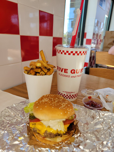 Read moreFive guys makes excellent burgers. Not your average fast food place. A bit pricey, so I wouldn't eat here all the time. Oh, and don't make changes to your order because they might miss something when fixing it. See, their regular burgers are two patties and their "little" burgers are one patty. I had to switch mine cause I just don't need that much and they forgot my grilled onions. When they say a regular fry will feed two, know this, unless the two of you are both growing teenage boys who are considered human garbage disposals by your family, I think a regular might feed at least three because their large will feed four adults. But their fries are awesome. Oh, and the peanuts are free! Just make sure you use the scoop. No one wants someone else's dirty fingers in...