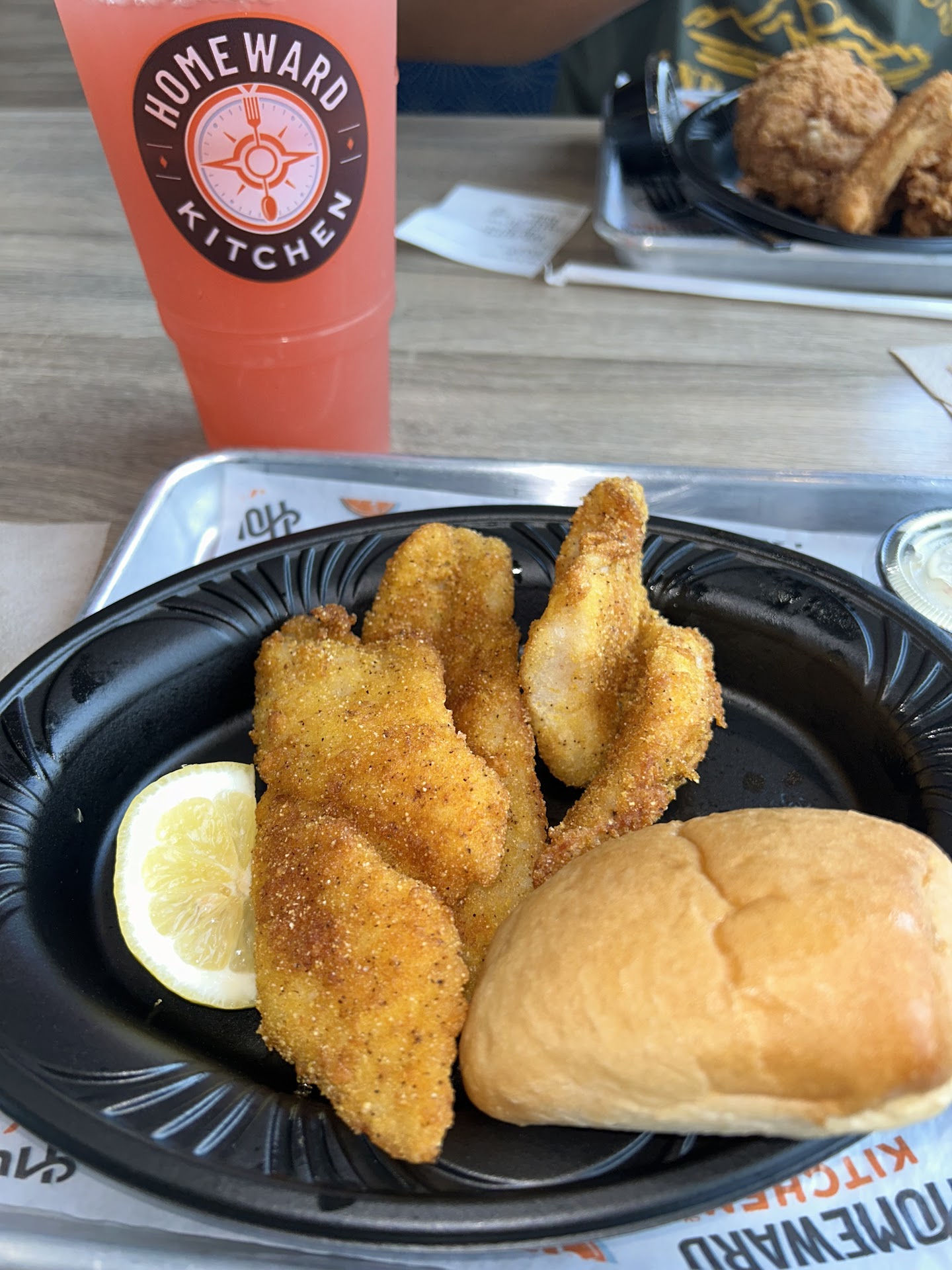 Read moreWhen I tell you, This is the place to be❤️I truly felt welcomed entering in, This was my first time trying Homeward Kitchen, and it was Finger Lickin Goodt,🤪. I ordered the Fried Fish which was piping Hot and Fresh, and my Husband ordered the Fried Chicken which he said was juicy and delicious 😋. If you hadn’t tried they strawberry 🍓 Lemonade you definitely missing out straight 🔥. They honey 🍯 butter 🧈 yeast rolls 🔥. Mr. Ford, you have to meet him his personality is Above Beyond Expectations. I tell you what this place welcomes you with open arms 🤗 and I love that. I went to wash my hands before I ate, bathrooms were extremely clean. Sanitation Score here is 100. Babe you definitely will have my business if you continue to stay this way. If you haven’t tried Homeward Kitchen. I don’t know 🤷🏽♀️ what you waiting on, try it for yourself and you will see♥️. Until the next time I see y’all, coming in Hot 🤗😘.It’s a 10/10 for me. Oooo I almost left out I also had the salad 🥗 for a side (not pictured) I smashed it, 😂It was so fresh as well they also make they ranch dressing from scratch....