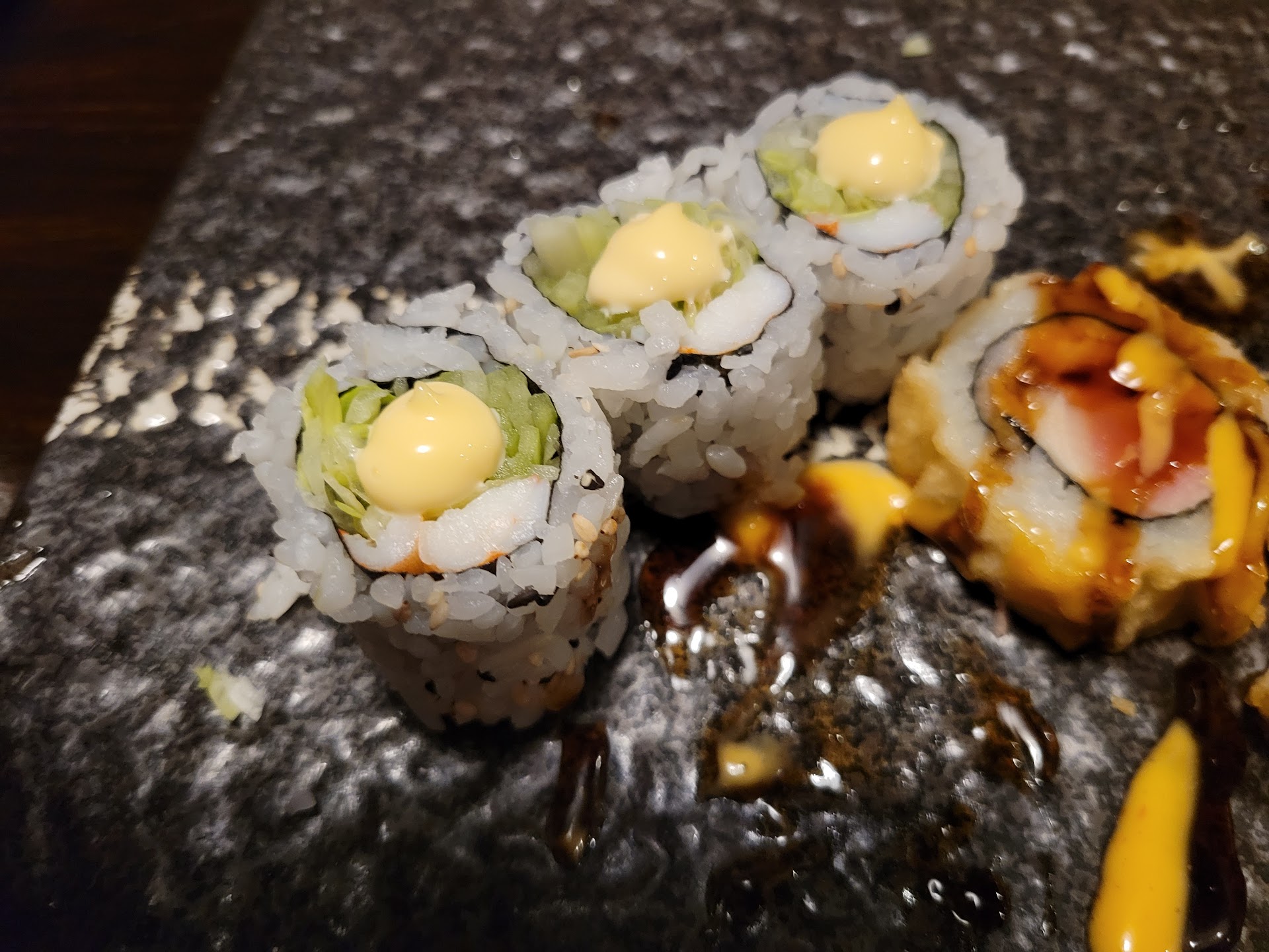 Read moreTorn between 3 and 4 stars... decided on 4 because I think there just isn't a ton of these kinds of restaurants in the vicinity. Food was good. My husband got sweet and sour chicken and crab rangoon. They were having a special of beef pho, so I got that and 3 rolls of sushi. The sushi was good, small... like tiny rolls... but good. The beef pho... omg I ended up eating the noodles. When ordering the pho I asked what kind of beef it was... was it all fatty and gross. The waitress said no... the beef is so great it melts on your mouth. I decided to order it and it was not the business. The beef was so fatty and tough in areas, then another bite was like biting into a bite of bumpy lard. There was also this beef sausage in it that tasted like imitation canned beef sausage.. disgusting. I literally ate the noodles and veggies. That was another thing that was a bit different. The sauces and vegetables didn't come standard... like on a plate and bottles on the table... or even just brought out for those getting pho. I had to ask for all the sauces I wanted to add to my pho, and they brought them out in small paper cup things. Normally you get a plate of bean sprouts, mint, lime, jalapeno... all the fixings... nope, not here... it was really weird. For the area... okay. But definitely not a place I'm dying...