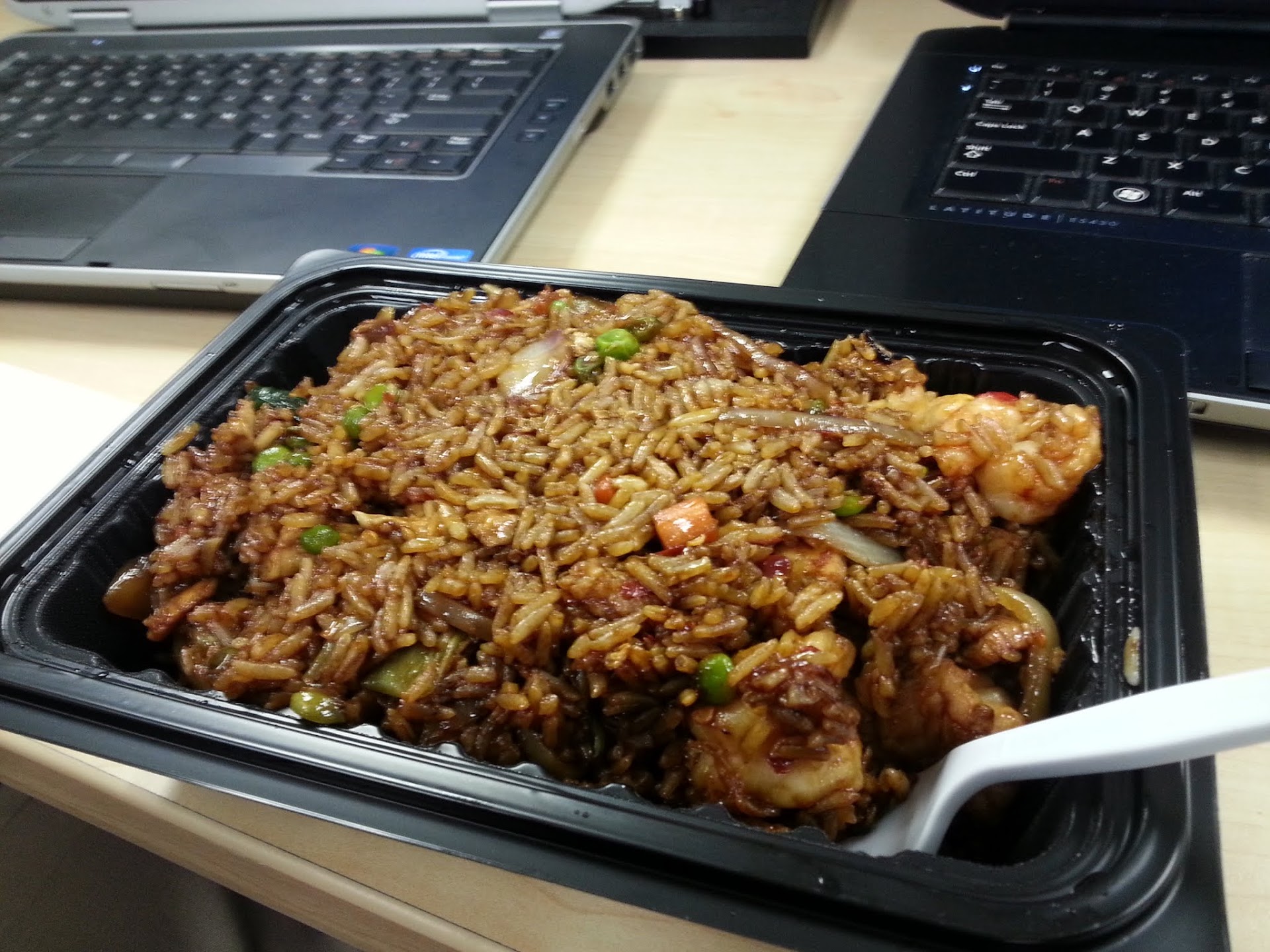 Today, 2 of my coworkers and I ordered 3 different meals for Takeout: I ordered the Pad Pak Chicken. It was delicious. Ordering food with hot level of spice is spicier than other Thai restaurants, but that is fine with me. My coworkers ordered medium Beef Drunken Noodles (also one of my favorites) and medium Chicken Pud Thai (rice noodles). Both of my coworkers thought their food was great, so consider this 3 very positive food reviews.