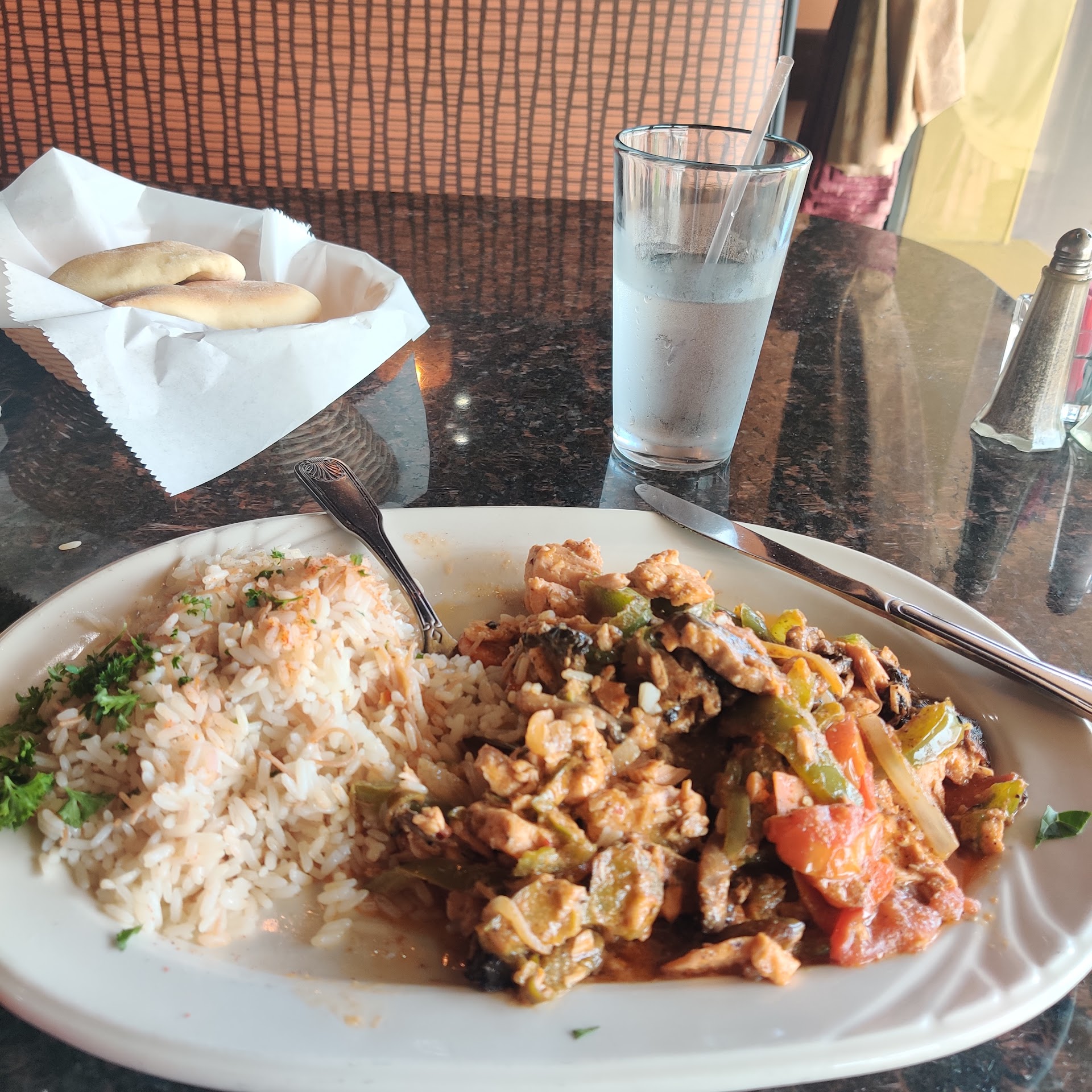 Update 12/2019: tonight I tried all new things. Fattoush salad, Soujok (sausage with sautéed onion and tomato) on a plate, Adak (small bowl of crushed lentil soup), 2 small Baklava, and a small Mango smoothie. That was just about all I could comfortably finish and still enjoy. The Baklava was presented in two forms: a small rolled cylinder and a small flaky flattened sphere. I preferred the flaky one - it was buttery and sweet and stuck...