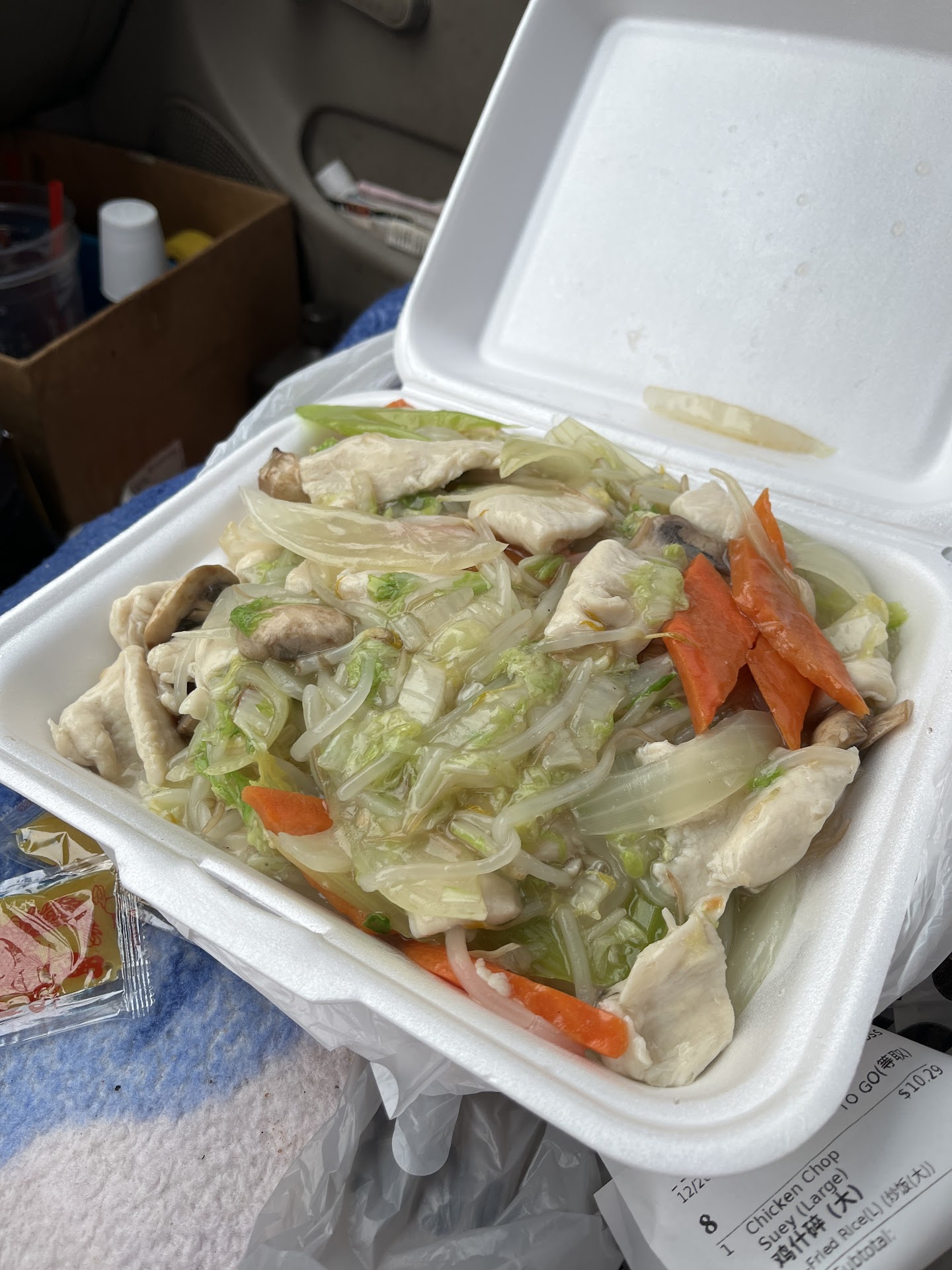 Read moreLittle rundown inside, but the food is looks pretty amazing. I got some chicken chow mein in Detroit somewhere and it was garbage last night. This looks amazing. The sauce looks wonderful the vegetables everything. The chicken is nice and tender unlike the place I went to last night in Detroit, it was all dried out chicken. I don’t even remember the name of the place, and it was busy too, which is really strange but the food was awful, but this place is amazing. Fried rice tasted too greasy here, I had to swap it out for...
