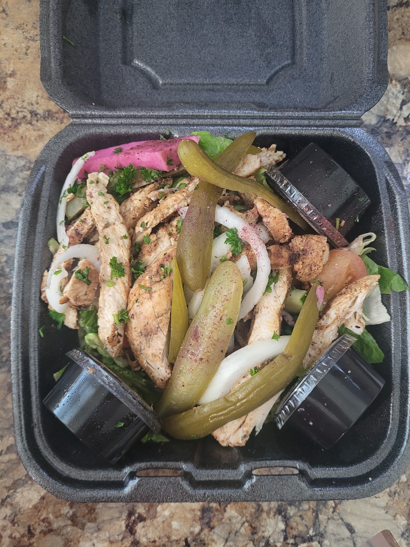Read moreI ordered a Spinach Fattoush Salad, with chicken this evening #306141. This was my 3rd time ordering from them. The 1st time a few months ago, my food was delicious, fresh, and seasoned very well. The 2nd time I went there about a month ago, my food was extremely greasy, and not seasoned well. They were extremely busy, that day. Today they were having some catered event inside their small restaurant, and apparently that catered event got the best food. They were also busy with regular customers. My salad looked like it was just thrown together. There were these huge leafs of spinach, instead of baby spinach, which is more edible for a salad. I had to cut these leafs of spinach up into smaller pieces. The same was for the tomatoes & cucumbers. There were huge chunks of each, that again I had to cut up, into smaller pieces. The spinach also had very long stems on them. All of this cutting up, I had to do, did not make for an enjoyable salad. It seems as though in busier times, they can't maintain the quality of their food. I am highly...