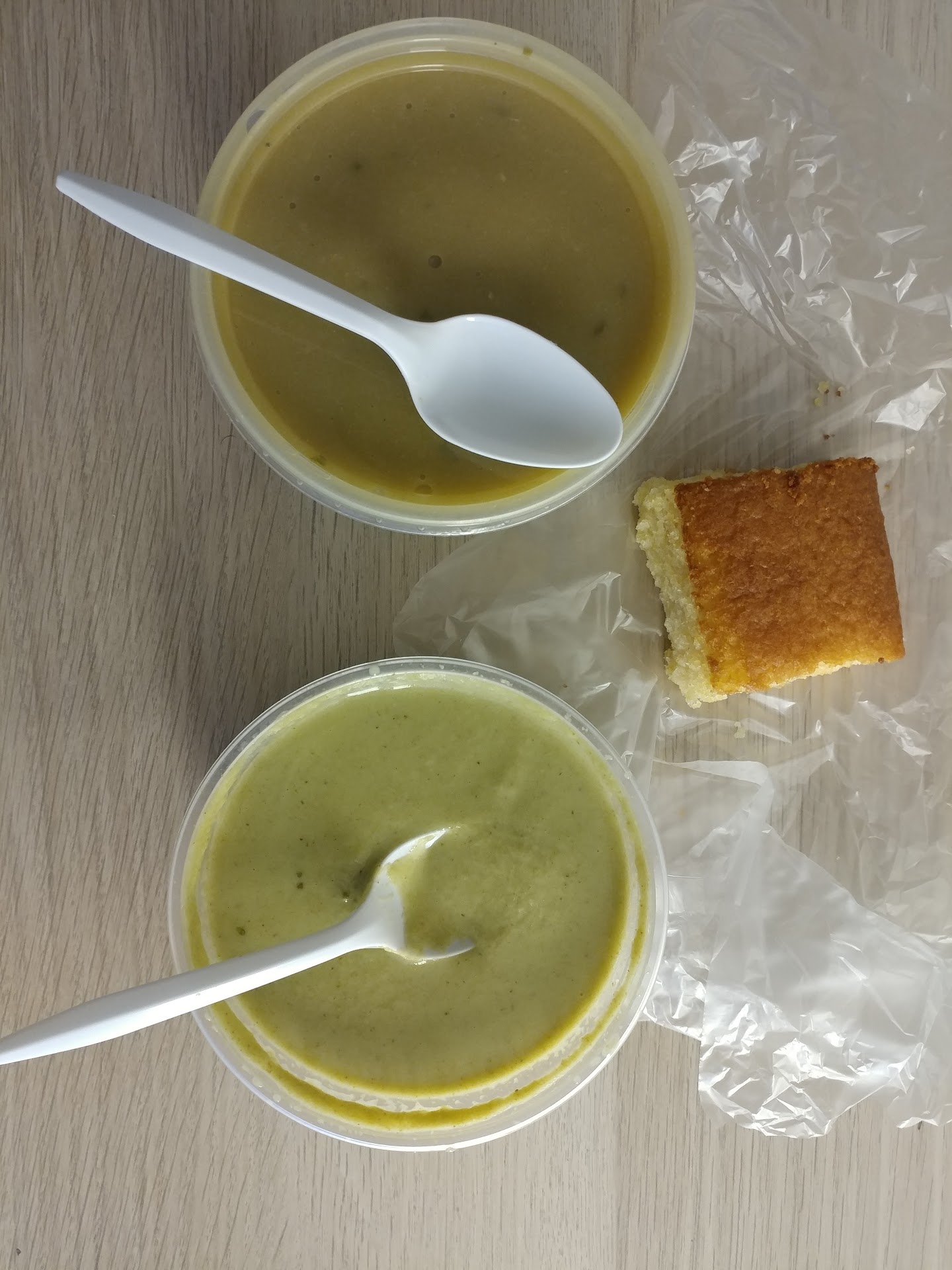 The cornbread was also tasty. It was tightly fit inside a small plastic baggie. It broke as I tried to pull it out of the bag. Unfortunately, the top of the cornbread stuck to the bag. I was scraping the top from the inside of the bag.