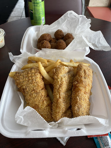Read moreI stopped here for lunch the first time last Friday. When I walked in, the place looked for a back of better term run down and outdated — not a lot of places to eat there inside. And the barstool next to the counter was very uncomfortable and kept sliding forward. I ended up moving to the table and now saying that. I was greeted with a smile, and a warm welcome from the young lady was taking my order. I ordered up the Codfish and Chips with french fries with a side of hushpuppies. The hushpuppies were delicious, and the fish was pretty good as well. I will have to come back and try more stuff. The food here...