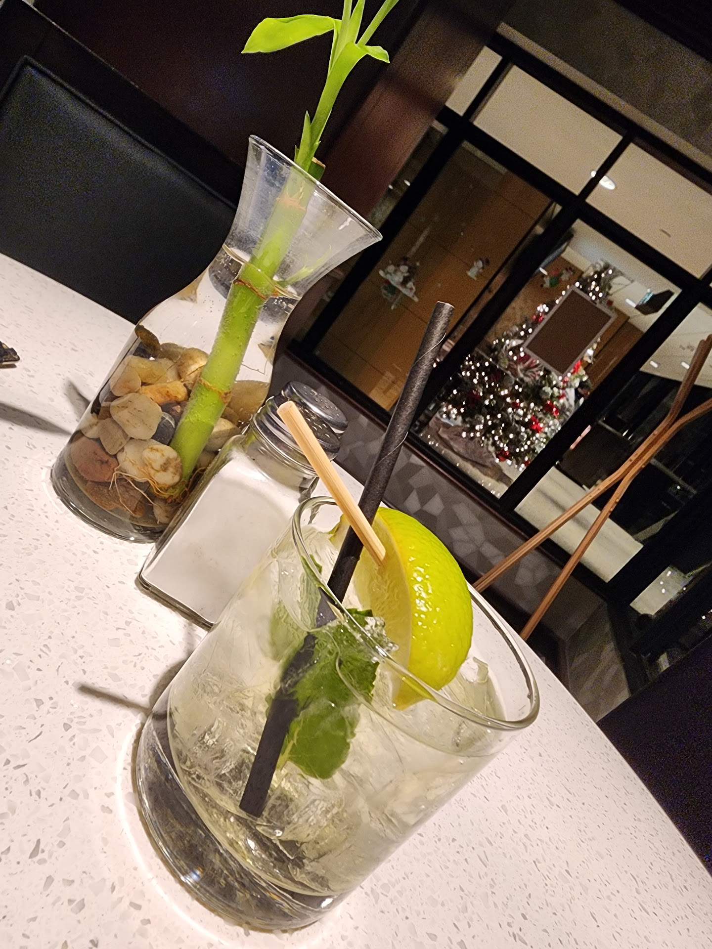 Atmosphere For my taste the decor, for me, was a little bland and trying too hard to be upscale. The space is nice and very clean and the bar looked like the more interesting area to be in both in terms of decoration and crowd. I'm unsure how much of the look is enforced by the Hotel itself but something a little out of the ordinary would have been more fun. Still, the space is clean and well maintained which goes a long way.